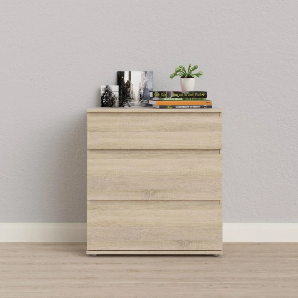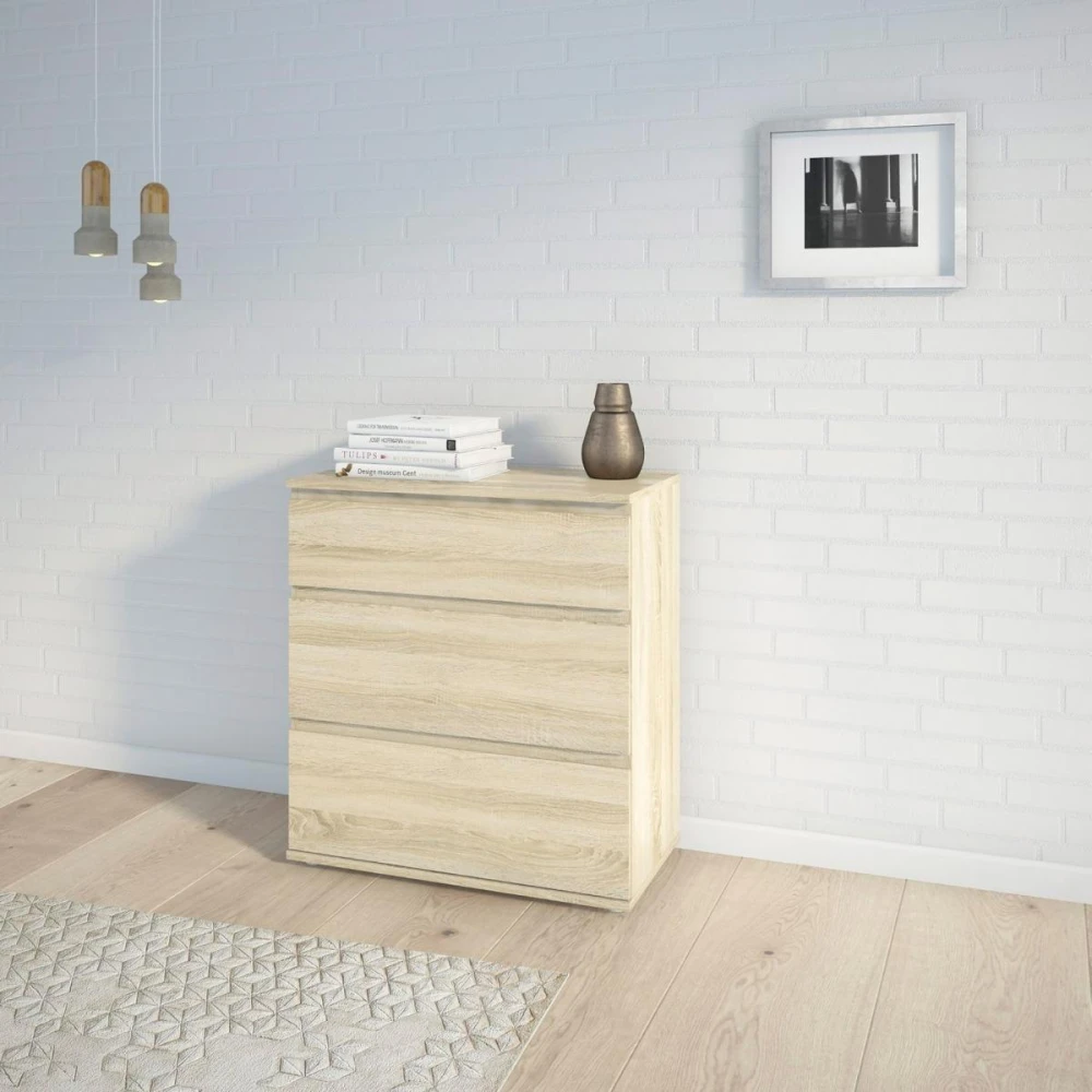 Komoda Nibby je skvělou variantou jak rošířit úložný prostor, kterého v každé domácnosti není nikdy dost. Komoda Nibby nabízí spoustu možností využití nejen v ložnici nebo obývacím pokoji, ale také v dětském pokoji, nebo v předsíni. Můžete do ní uložit např. oblečení, hračky, dokumenty, deskové hry, sbírku CD, nebo nezaložené fotografie. Komodu nabízíme v několika dekorech a jistě si najdete tu pravou, která bude ladit s Vaším interiérem. Komoda je vyrobená z lamina, které je velmi snadné na údržbu. Při výrobě je kladen důraz na ekologii. Je vyráběna v souladu s ohledy na životní prostředí a řadí se tak k eco-friendly výrobkům. Komoda je dodávaná v demontu. Součástí balení je montážní návod včetně všech potřebných spojovacích prvků. Vyobrazené doplňky a dekorace nejsou v ceně.