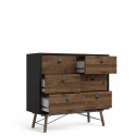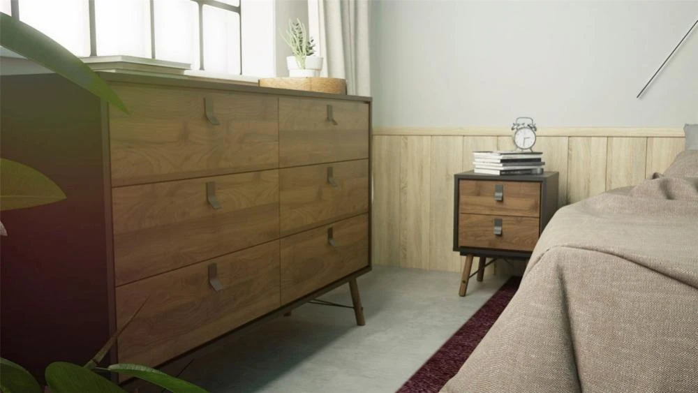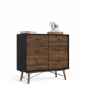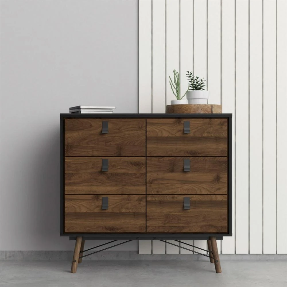 Kolekce Rain, inspirovaná nadčasovou dánskou designovou klasikou, kombinuje retro a moderní styl a nabízí široký výběr elegantního nábytku. Vyznačuje se šikmými nohami z mořeného masivního buku v kombinaci s kovovými tyčemi, úchytkami z vysoce kvalitního hliníku s matným černým povrchem a „plovoucími čely“. Iluze plovoucích čel je dosažena kombinací 12 mm vnitřní skříňky s 18 mm vnější skříňkou. Tento jedinečný design dodává celkové estetice nádech lehkosti.