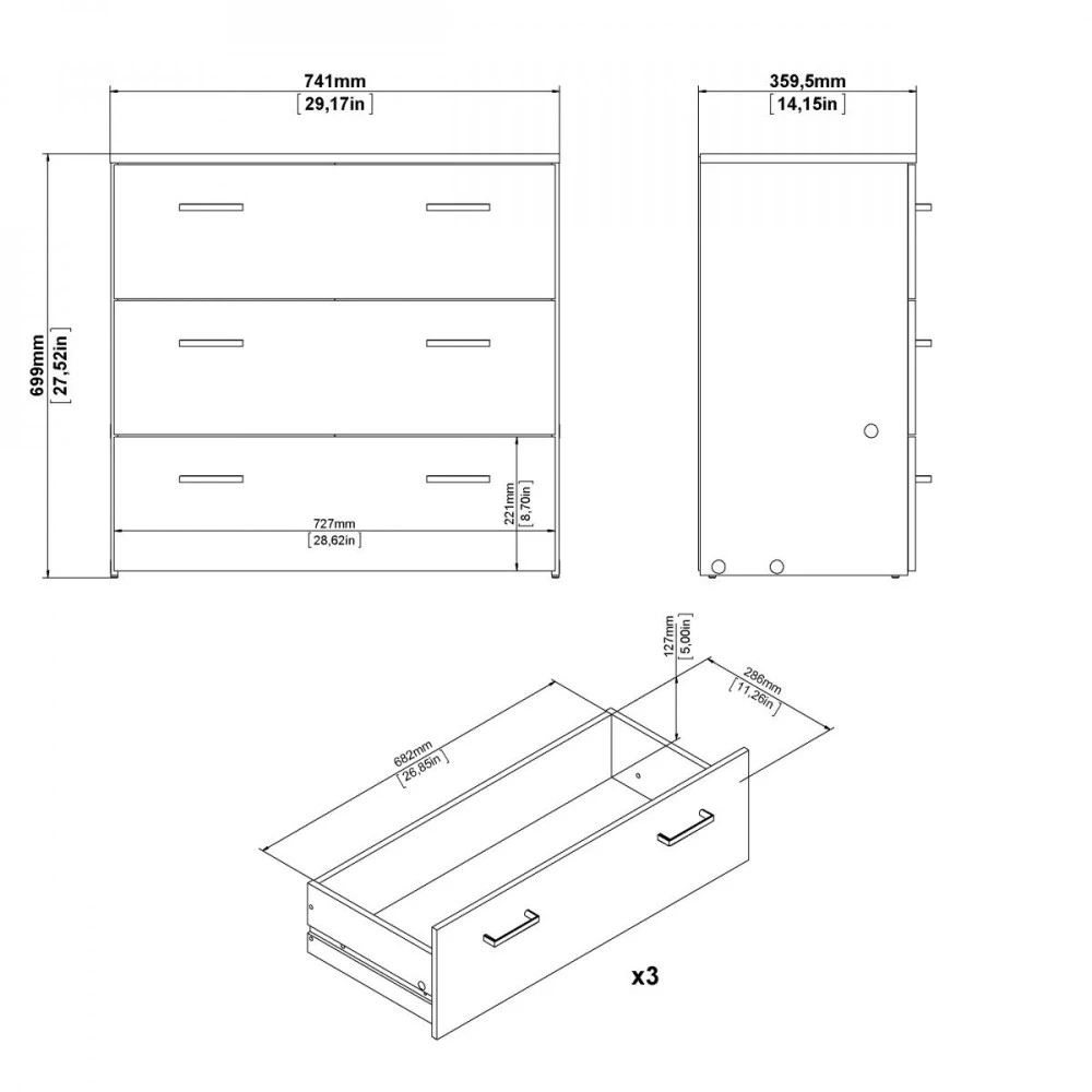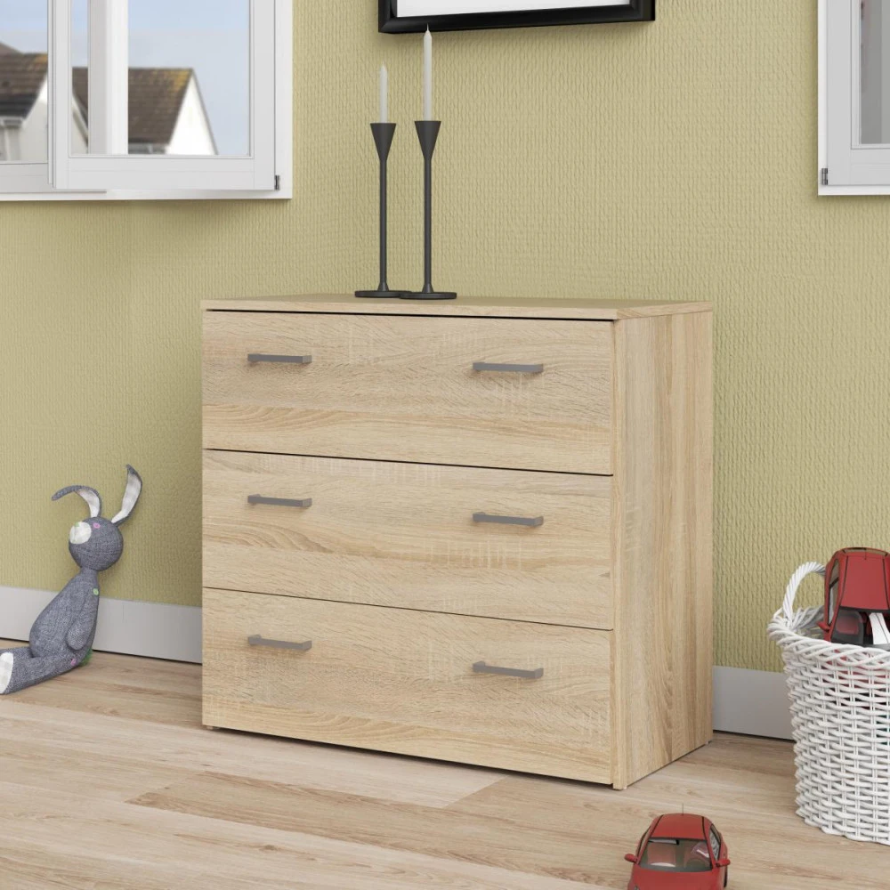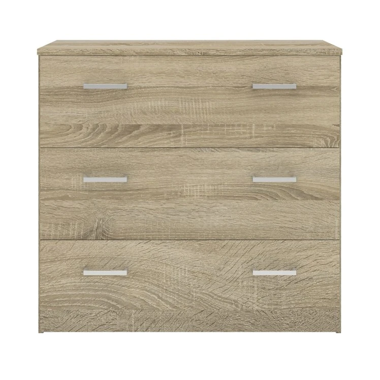 Praktická komoda Sid v nadčasovém designu bez námahy doplní jakýkoliv interiér. Vnitřní uspořádání nabízí dostatek úložného prostoru, funkčnost a univerzální využití. Série Sid vyrobená ze snadno udržovatelného lamina obsahuje také noční stolky a šatní skříně v různých velikostech.