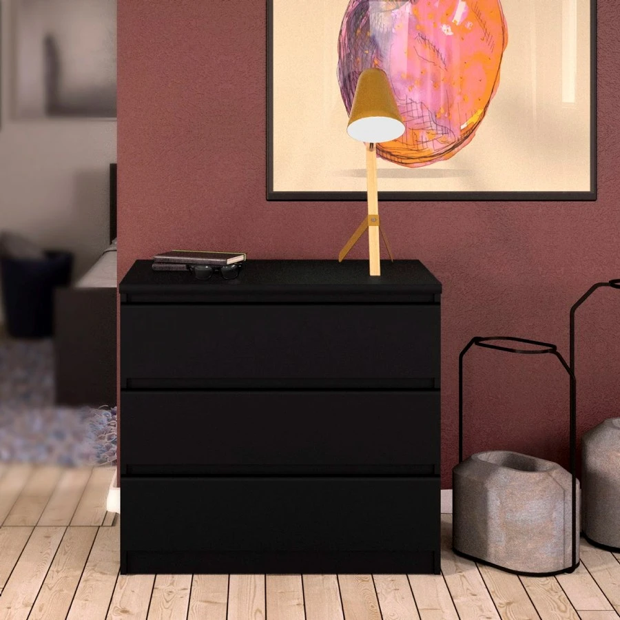 Komoda Simplicity v nadčasovém minimalistickém designu bez úchytek dodá moderní nádech vašemu interiéru. Díky svému provedení nabízí dostatek úložného prostoru a najde uplatnění v kterékoliv místnosti vašeho bytu. Sortiment této řady vyrobené z kvalitního lamina nabízí noční stolky, postele, komody, botníky a další úložné prostory v široké škále barevných variant a velikostí.