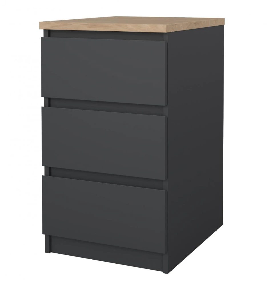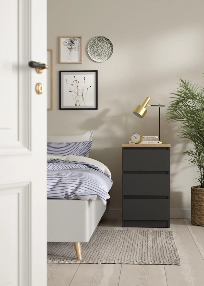 Komoda Simplicity v nadčasovém minimalistickém designu bez úchytek dodá moderní nádech vašemu interiéru. Díky svému provedení nabízí univerzální použití třeba jako noční stolek nebo zásuvková skříňka k psacímu stolu. Sortiment této řady vyrobené z kvalitního lamina nabízí noční stolky, postele, komody, botníky a další úložné prostory v široké škále barevných variant a velikostí.