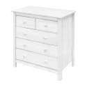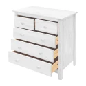 materiál masiv borovice, barevné provedení bílý lak 2 menší a 3 větší zásuvky s kovovými pojezdy