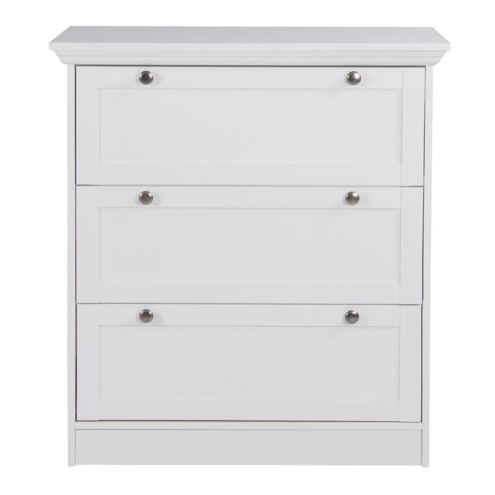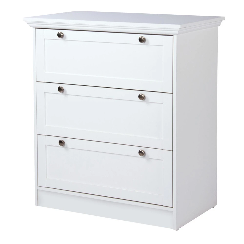 materiál kombinace MDF / lamino, barevné provedení bílá 3 zásuvky s kovovými úchytkami starožitného vzhledu součást sestavy Landwood