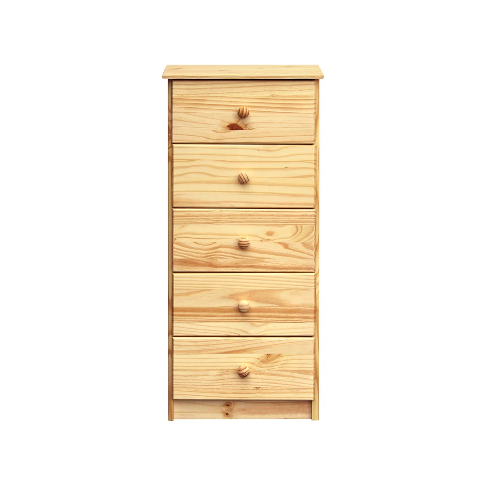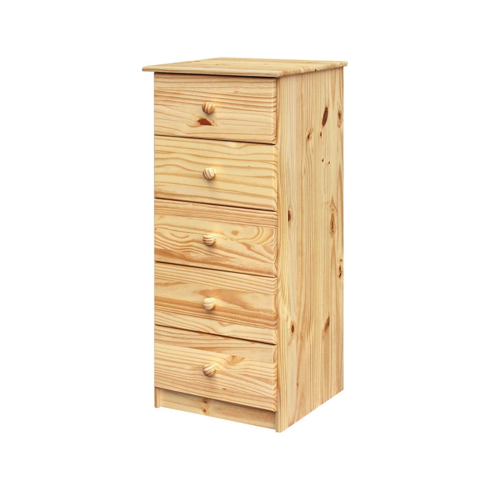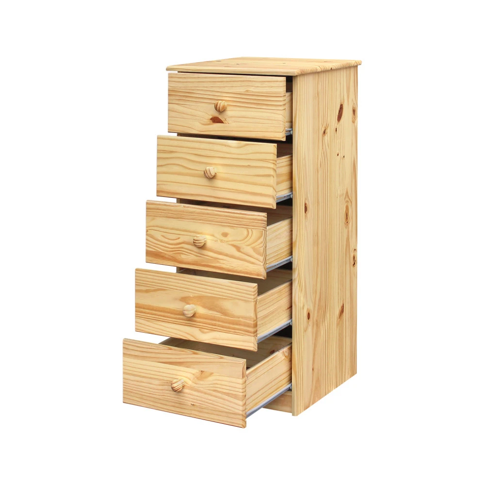 materiál masiv borovice, lakované provedení 5 zásuvek s kovovými pojezdy, hloubka zásuvky 36,5 cm