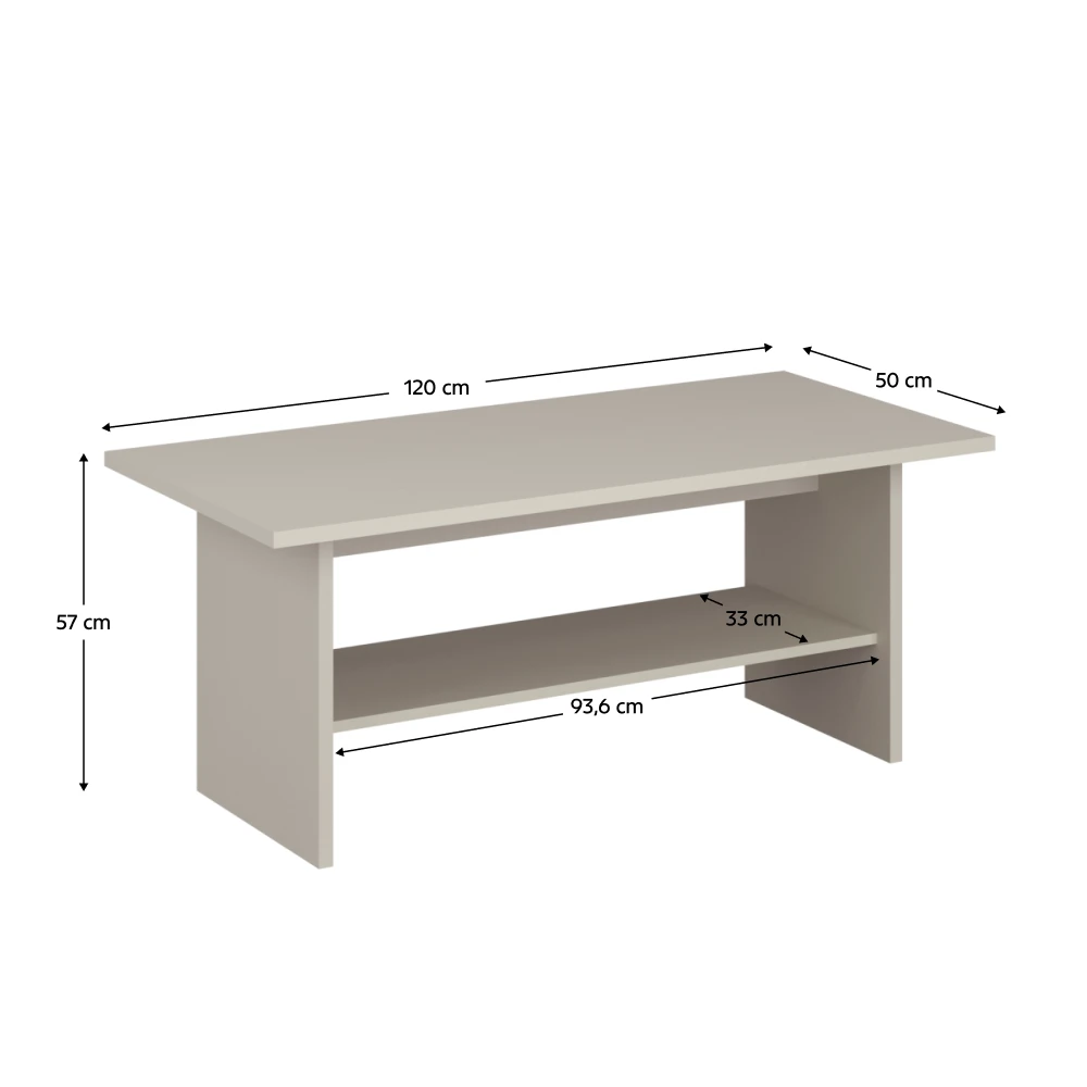 Stylový konferenční stolek v elegantní barvě kašmír je ideálním doplňkem do moderního obývacího pokoje. Díky čistým liniím a nadčasovému designu snadno zapadne do různých interiérů a vytvoří harmonický celek.