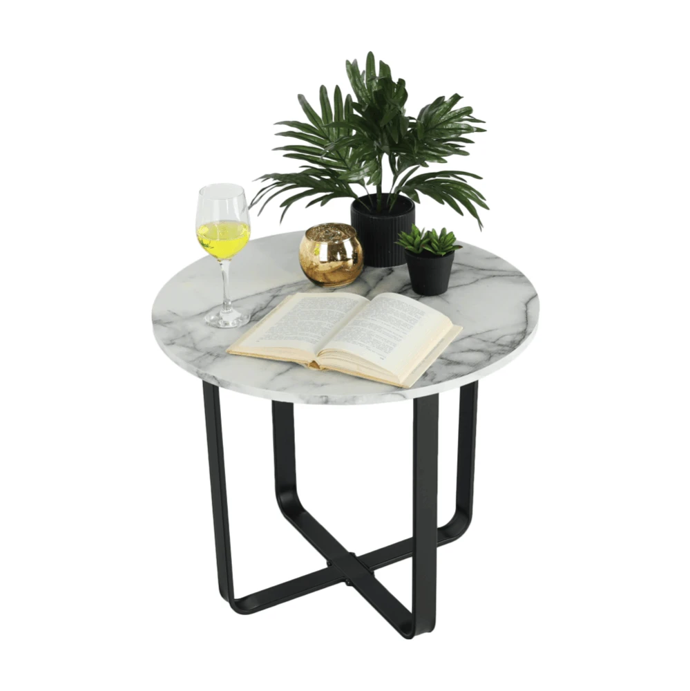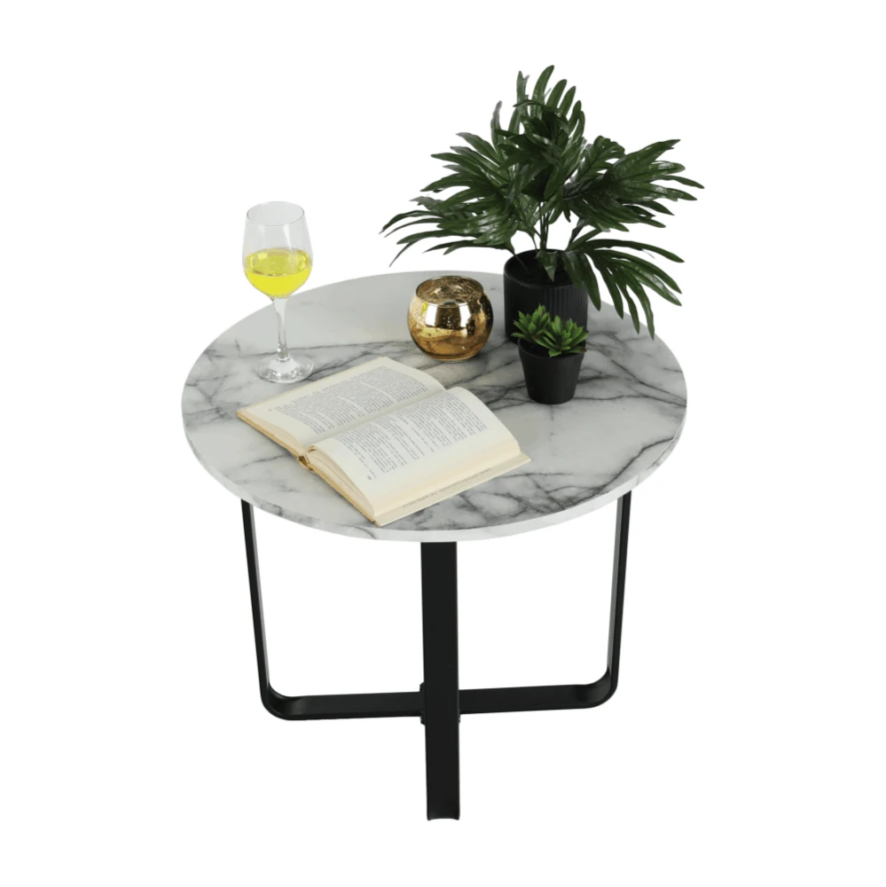 Konferenční stolek, bílý mramor/černý kov, SALINO