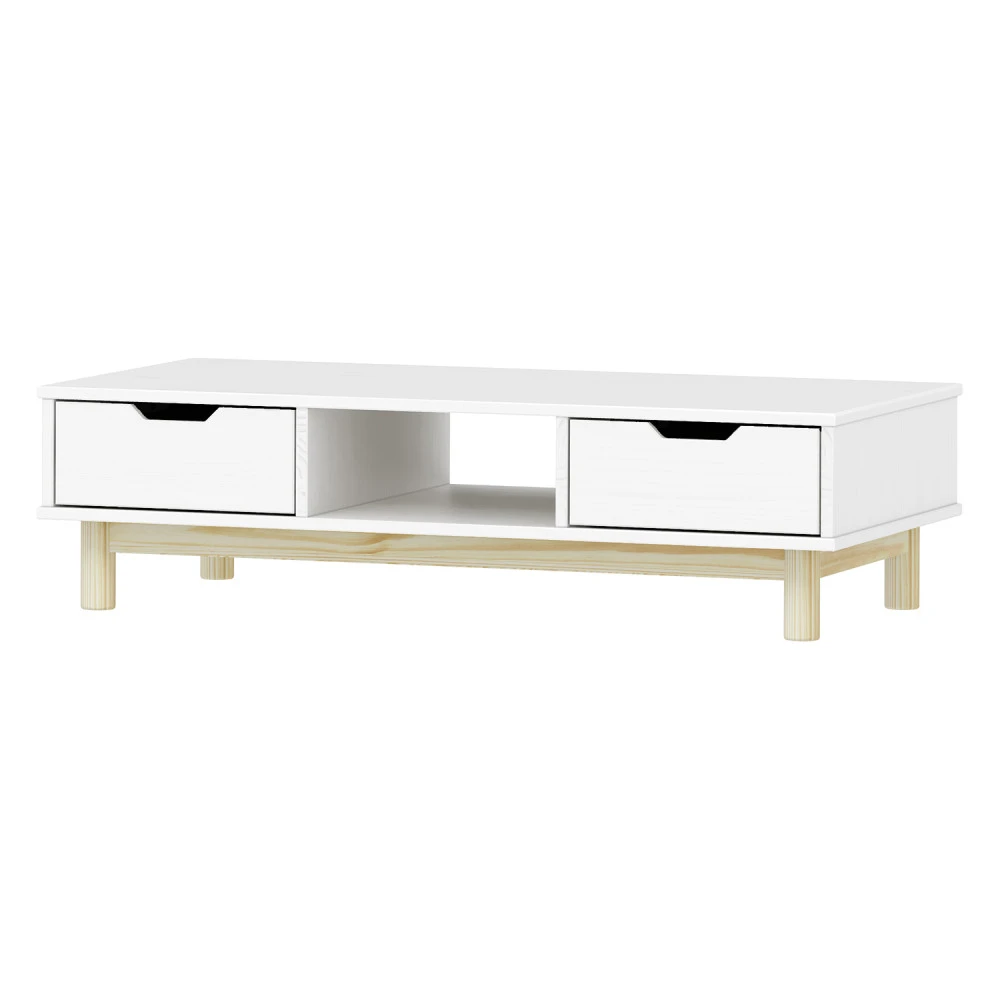 materiál masiv borovice, barevné provedení bílý lak 2 zásuvky s kovovými pojezdy