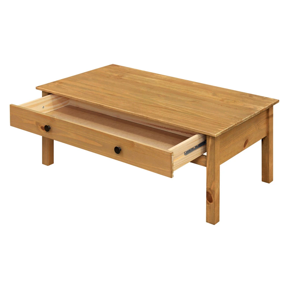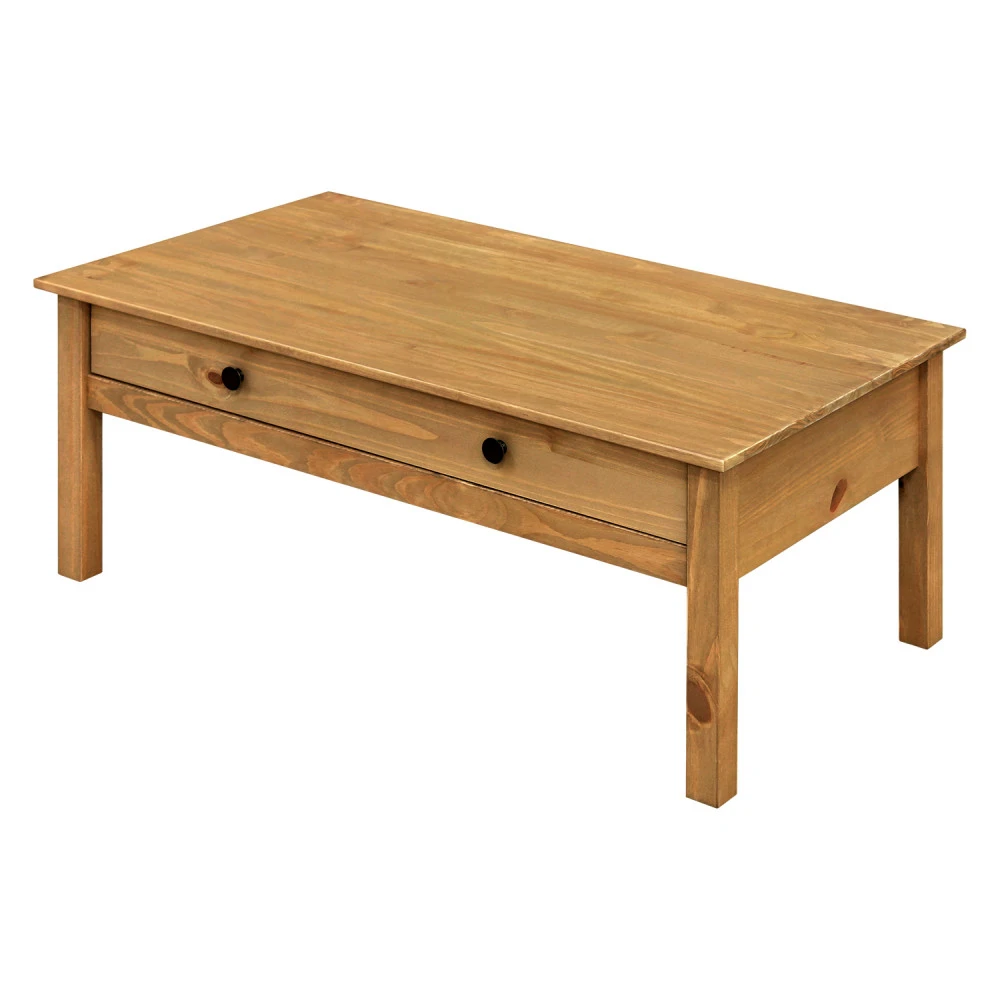 materiál masiv borovice voskovaná v medovém odstínu kovové úchytky v barevném provedení černěná mosaz široká zásuvka s kovovými pojezdy
