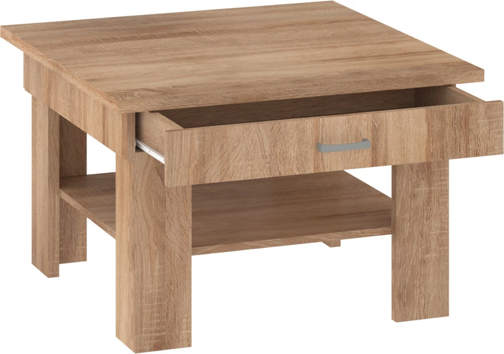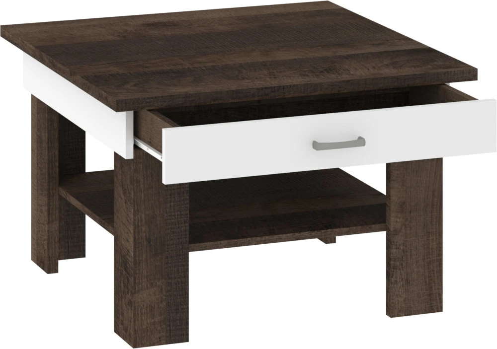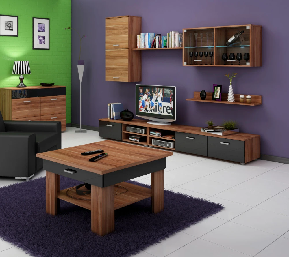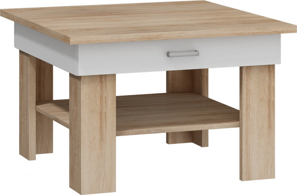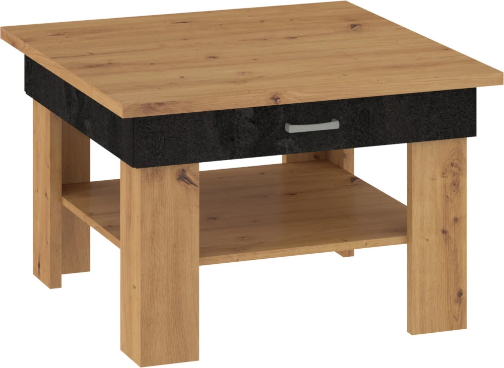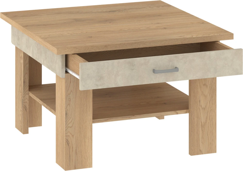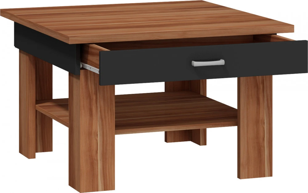 Konferenční stolek Omega. Stolek má prostornou polici a dvě praktické zásuvky. Je vhodný především do interiérů, kde je kladen důraz na moderní a stylové bydlení.