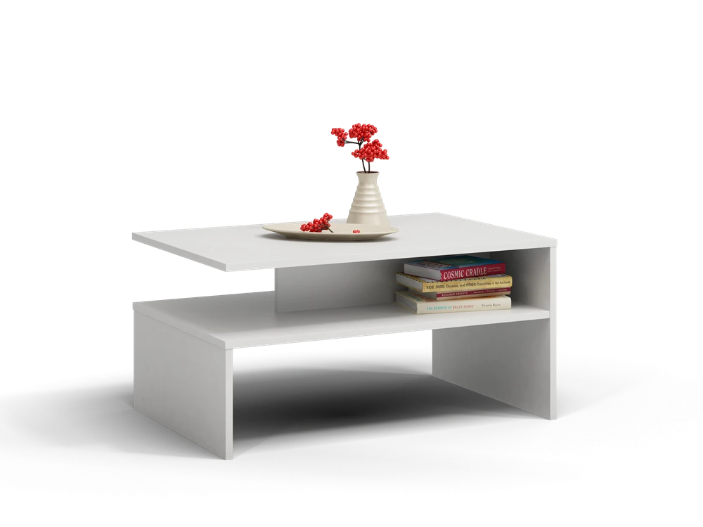 Konferenční stolek Beata ve velmi oblíbeném minimalistickém designu podtrhne moderní charakter každého obývacího pokoje či kanceláře. Stolek s praktickou odkládací policí je vyrobený ze snadno udržovatelného lamina.