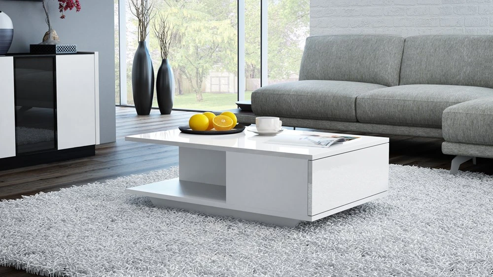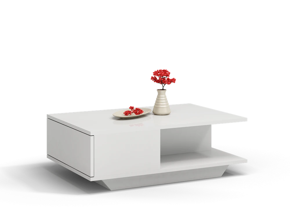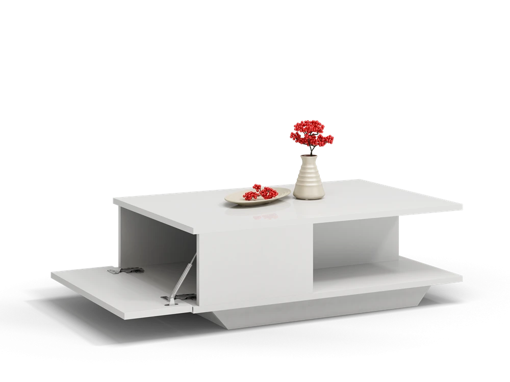 Konferenční stolek Derik v minimalistickém designu podtrhne moderní charakter každého obývacího pokoje či kanceláře. Je vyrobený ze snadno udržovatelného lamina. Stolek nabízí praktický úložný prostor s dvířky TIP-ON bez úchytek, které lze snadno otevřít lehkým stiskem. Dveře se otevírají směrem dolů do polohy, která je pro uživatele pohodlná. Chcete-li je zavřít, stačí lehce stisknout přední část.