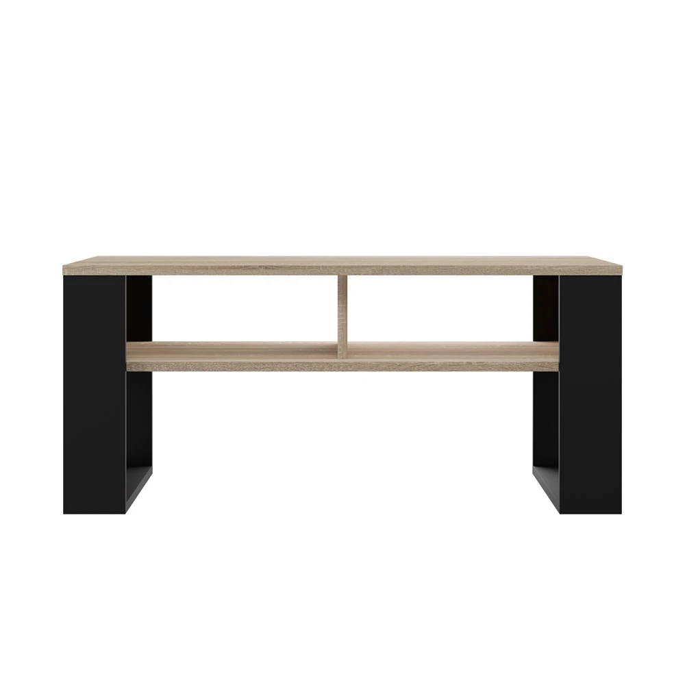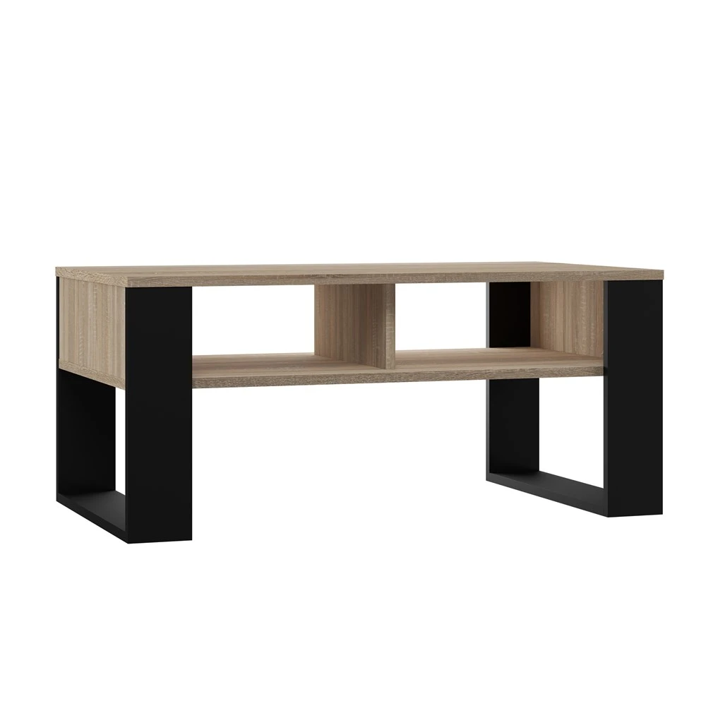 Konferenční stolek Sava v Loft stylu podtrhne moderní charakter každého obývacího pokoje, kanceláře i haly. Stolek s praktickými odkládacími policemi je vyroben z dvojitě laminované desky se zvýšenou tvrdostí (zakončené ABS), díky čemuž je povrch nábytku odolnější proti poškrábání.