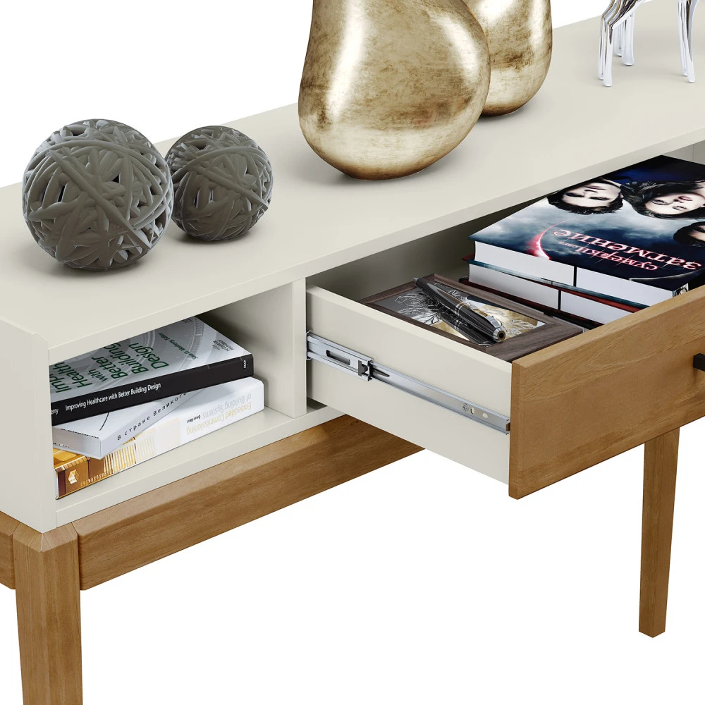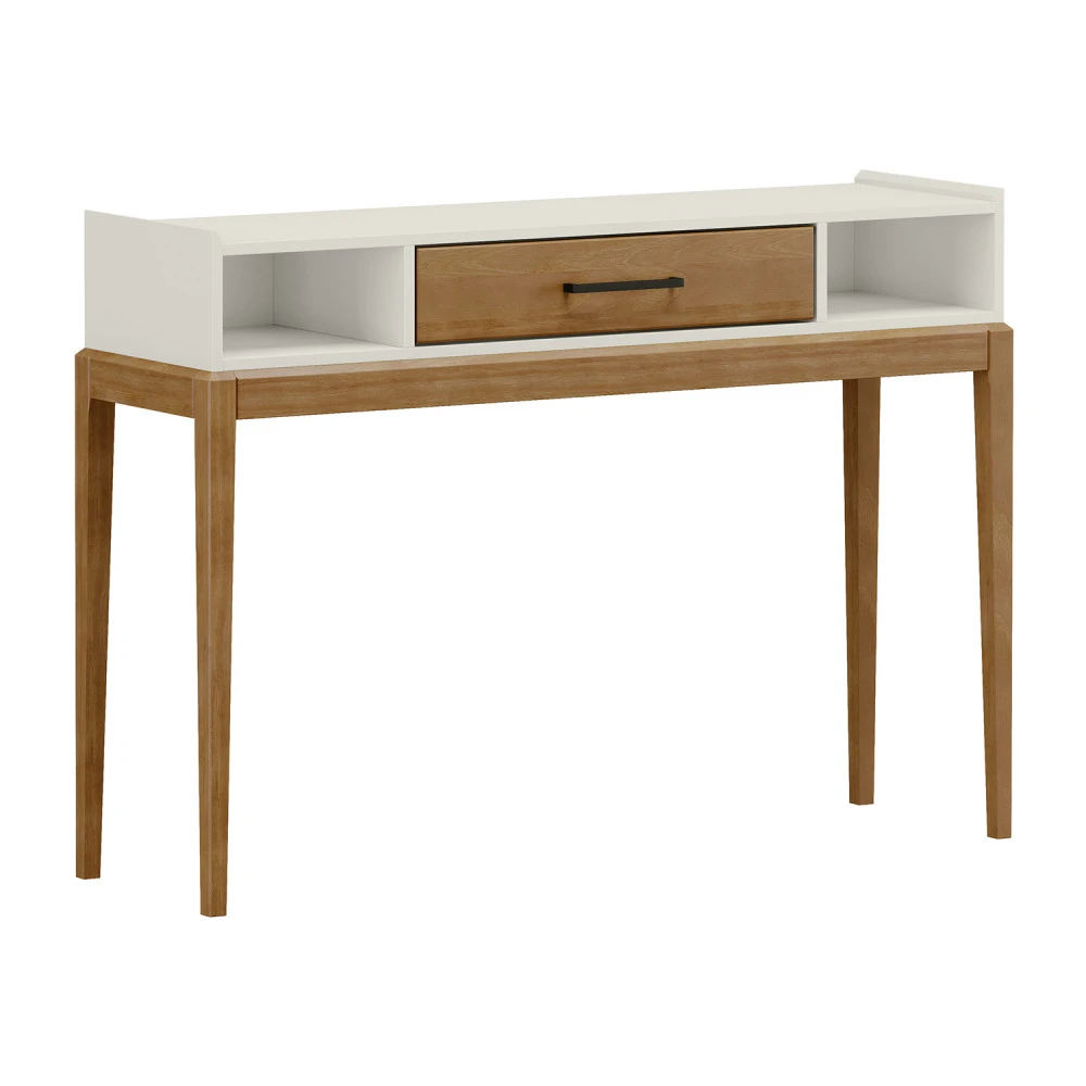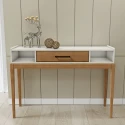 materiál masiv borovice v kombinaci s MDF barevné provedení dub / bílá černé kovové úchytky 1 zásuvka s kovovými pojezdy