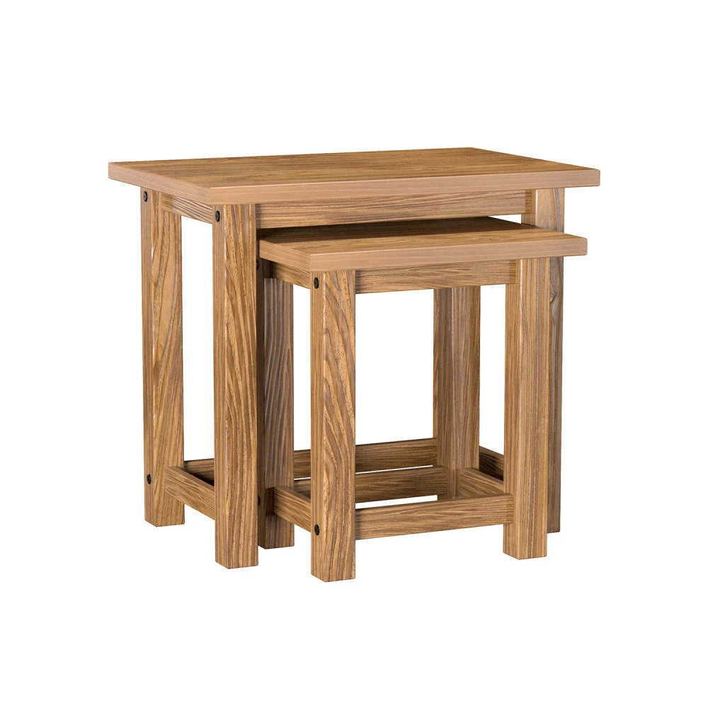 materiál masiv borovice, barevné provedení dub antik lakováno čirým lakem, vlis dřevěné struktury rozměr menšího stolku (š/h/v) 46 × 36 × 50 cm součást sestavy EL DORADO
