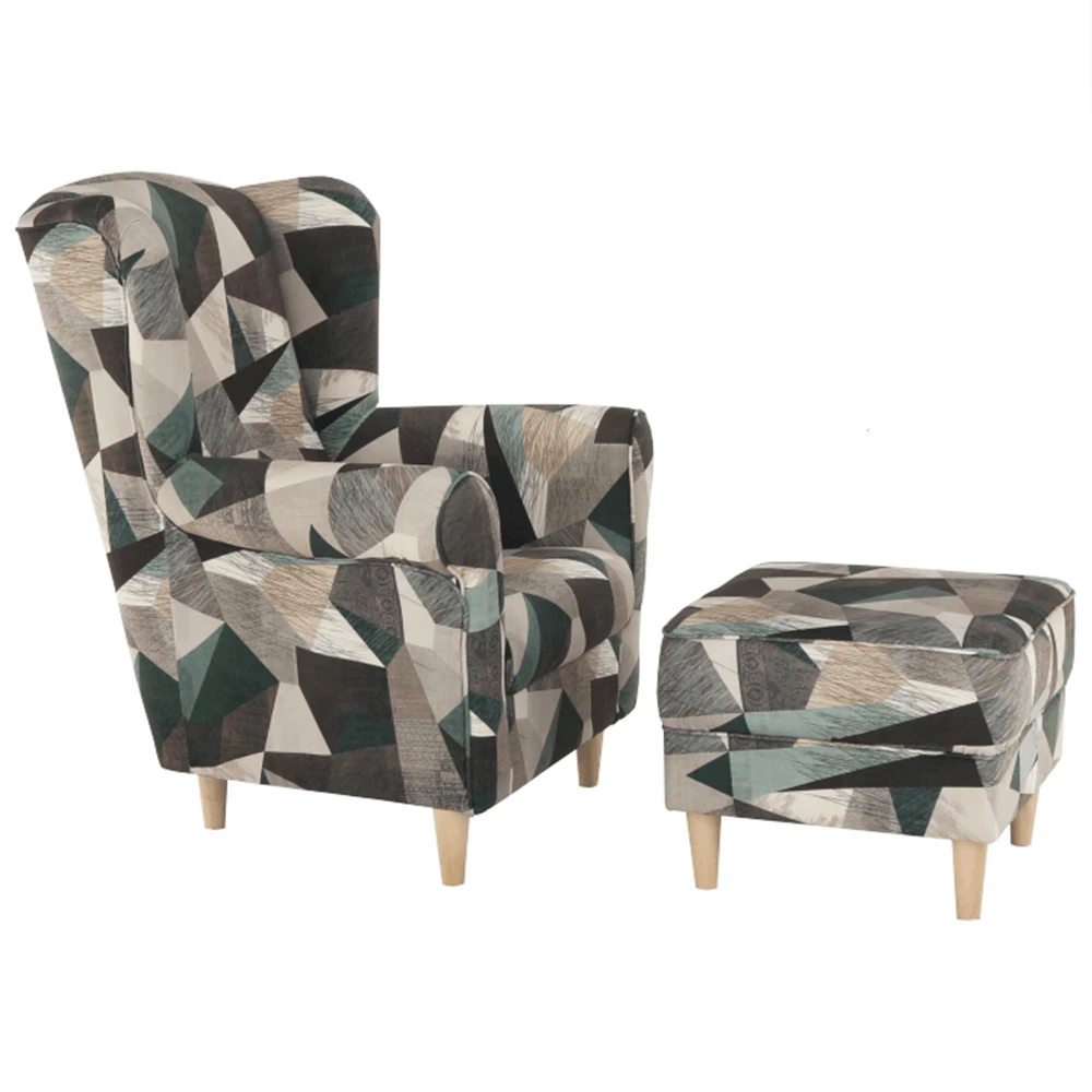 provedení: holm látka hnědozelená vzor- nožičky dřevěné.