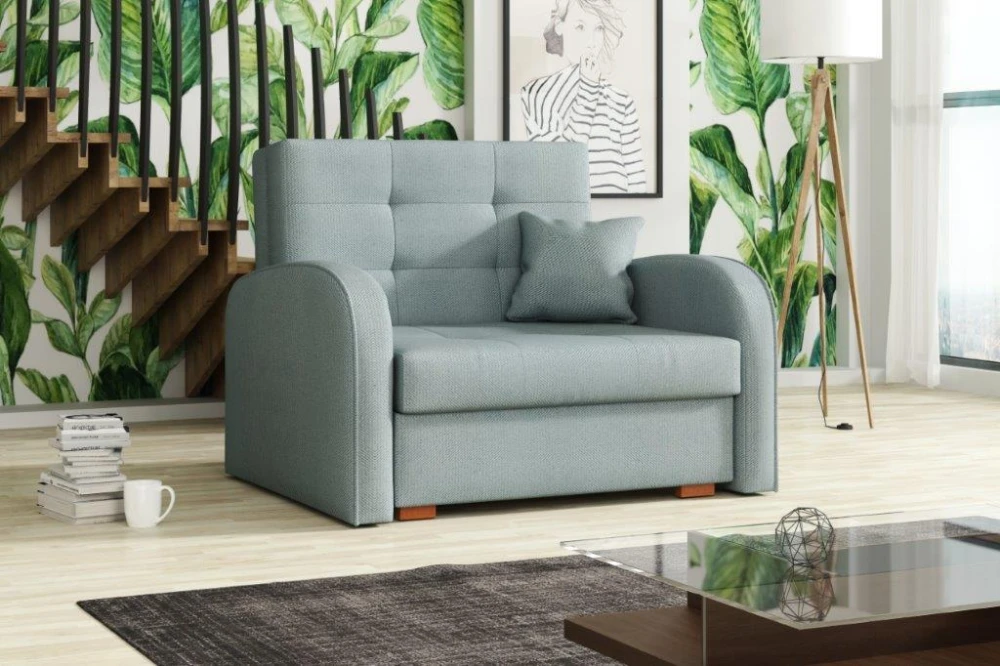Rozkládací křeslo Vivian je skvělou volbou pro ty, kteří bojují se stísněnými prostory. Je vhodné např. do dětského, studentského, nebo hostinského pokoje. Jednoduchým rozložením pomocí automatu, získáte lůžko k příležitostnému přespání Vaší návštěvy, nebo kamaráda dětí. Výplň sedáku tvoří vlnité pružiny v kombinaci s PUR pěnou. Křeslo je potaženo kvalitní potahovou látkou a nabízíme ho v několika trendy barvách. Křeslo disponuje i nepostradatelným úložným prostorem, který využijete např. na deku a polštář. V ceně křesla je 1 dekorační polštář. Ostatní vyobrazené dekorace nejsou v ceně.