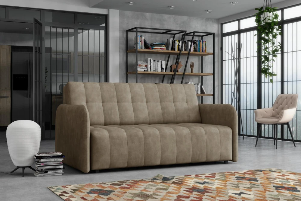 Rozkládací křeslo Vivian je vhodné do dětského, studentského, nebo hostinského pokoje. Jednoduchým rozložením pomocí automatu, získáte lůžko k příležitostnému přespání Vaší návštěvy, nebo kamaráda Vašich dětí. Výplň sedáku tvoří vlnité pružiny v kombinaci s PUR pěnou. Křeslo je potaženo kvalitní látkou s výběrem několika trendy odstínů a velmi elegantním prošíváním. Křeslo disponuje i nepostradatelným úložným prostorem, který využijete např. na deku a polštář. Ostatní vyobrazené doplňky a dekorace nejsou v ceně.