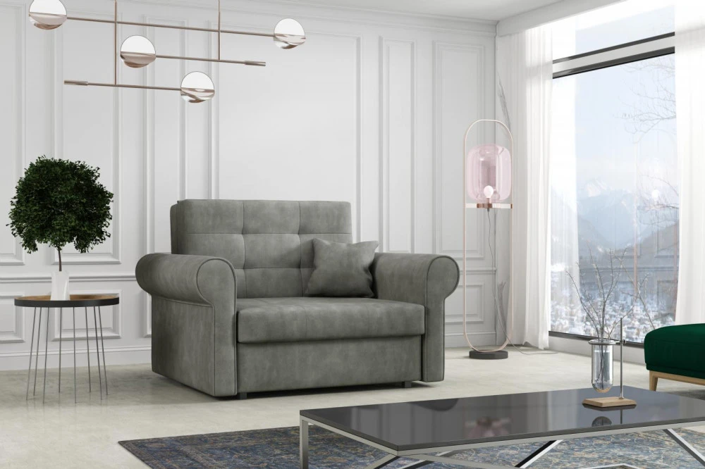 Rozkládací křeslo Vivian je vhodné do dětského, studentského, nebo hostinského pokoje. Jednoduchým rozložením pomocí automatu, získáte lůžko k příležitostnému přespání Vaší návštěvy, nebo kamaráda Vašich dětí. Výplň sedáku tvoří vlnité pružiny v kombinaci s PUR pěnou. Křeslo je potaženo kvalitní látkou s výběrem v několika trendy odstínů. Křeslo disponuje i nepostradatelným úložným prostorem, který využijete např. na deku a polštář. V ceně křesla je 1 dekorační polštářek. Ostatní vyobrazené doplňky a dekorace nejsou v ceně.