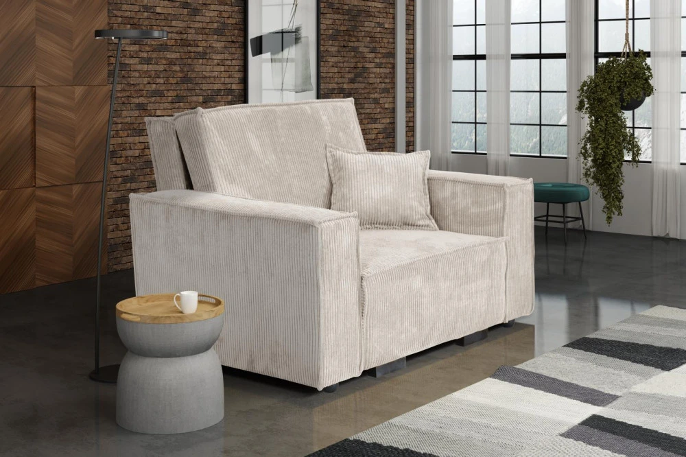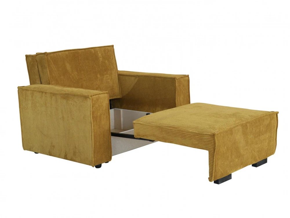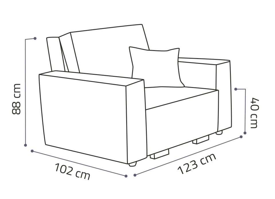 Rozkládací křeslo je vhodné do dětského, studentského, nebo hostinského pokoje. Jednoduchým rozložením pomocí automatu, získáte lůžko k příležitostnému přespání Vaší návštěvy, nebo kamaráda Vašich dětí. Výplň sedáku tvoří vlnité pružiny v kombinaci s PUR pěnou. Křeslo je potaženo kvalitní látkou s výběrem několika trendy odstínů. Křeslo disponuje i nepostradatelným úložným prostorem, který využijete např. na deku a polštář. Ostatní vyobrazené doplňky a dekorace nejsou v ceně.