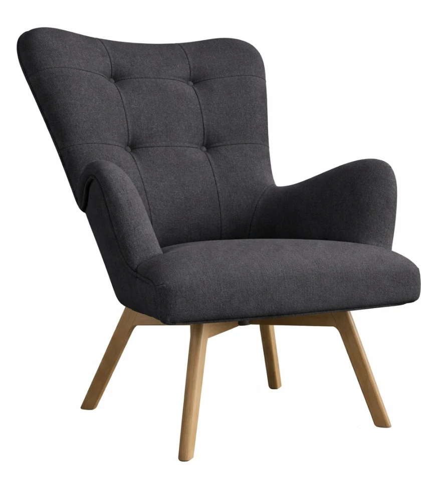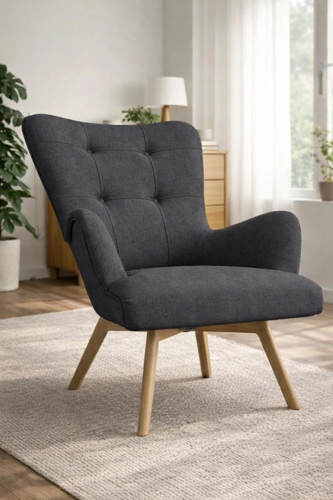 Křeslo v retro stylu působí elegantně a zároveň útulně. Nohy ve světlém odstínu dodávají celku lehkost a snadno se kombinují s dalším nábytkem. Díky tomu se křeslo hodí do moderních i klasicky laděných interiérů.