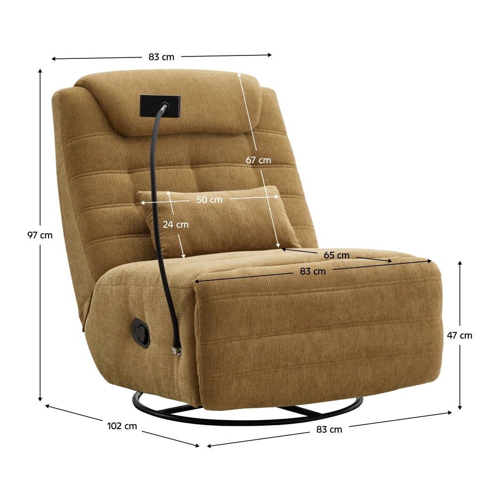 Křeslo je navrženo s důrazem na pohodlí i praktičnost. Nabízí kombinaci otočné, houpací a polohovací funkce, díky čemuž si snadno najdete ideální pozici pro odpočinek, čtení nebo sledování televize.