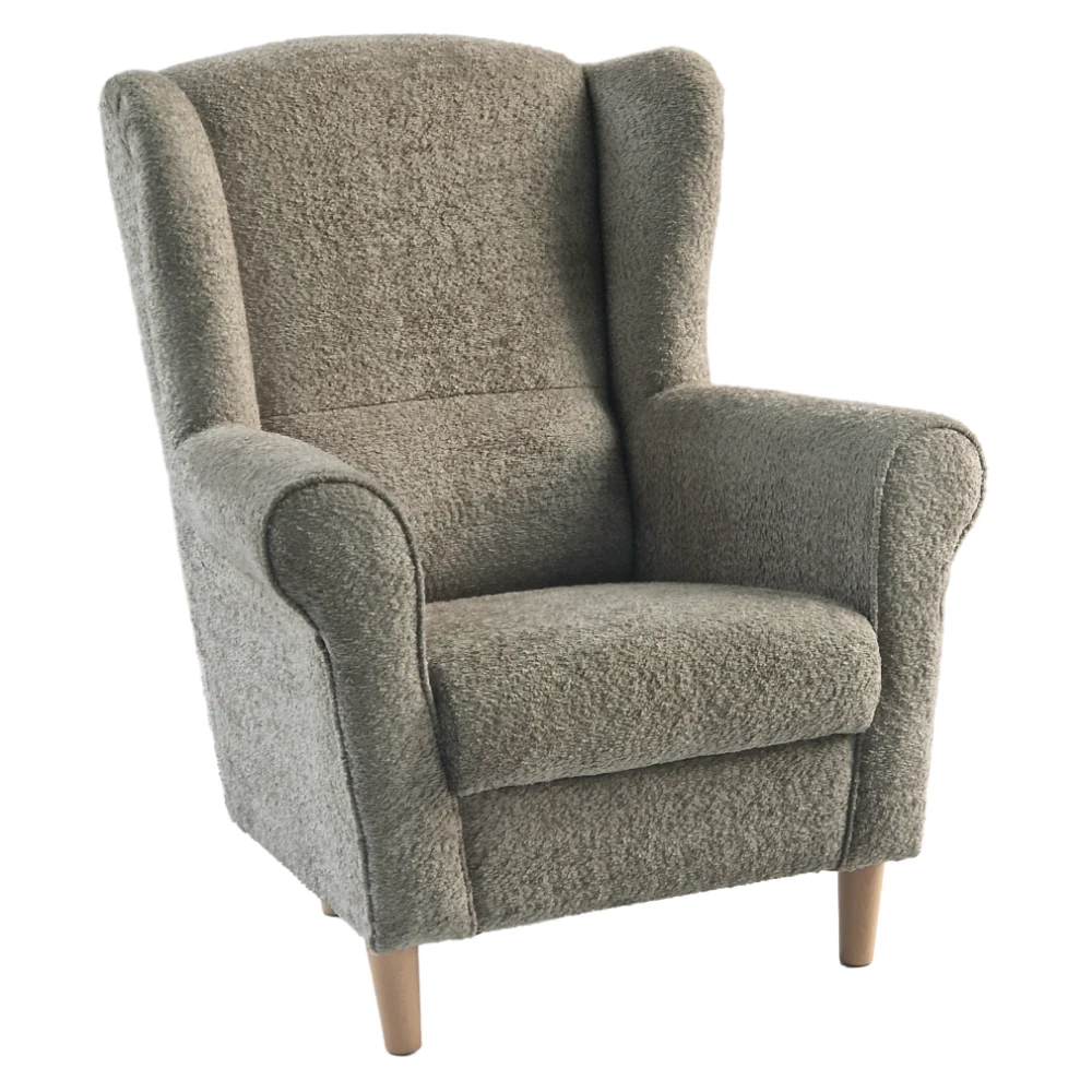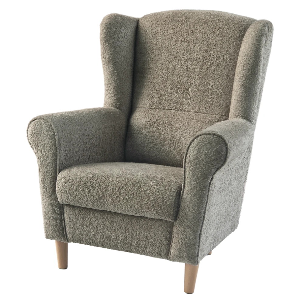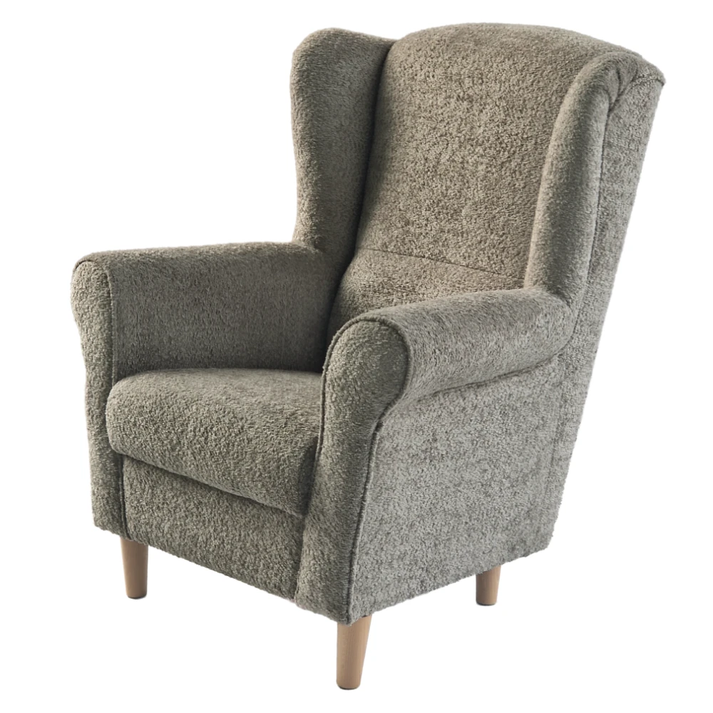 Kombinace jemného odstínu Taupe a světlého dřeva působí harmonicky a elegantně. Křeslo se tak snadno stane výrazným, ale přirozeným doplňkem vašeho domova.