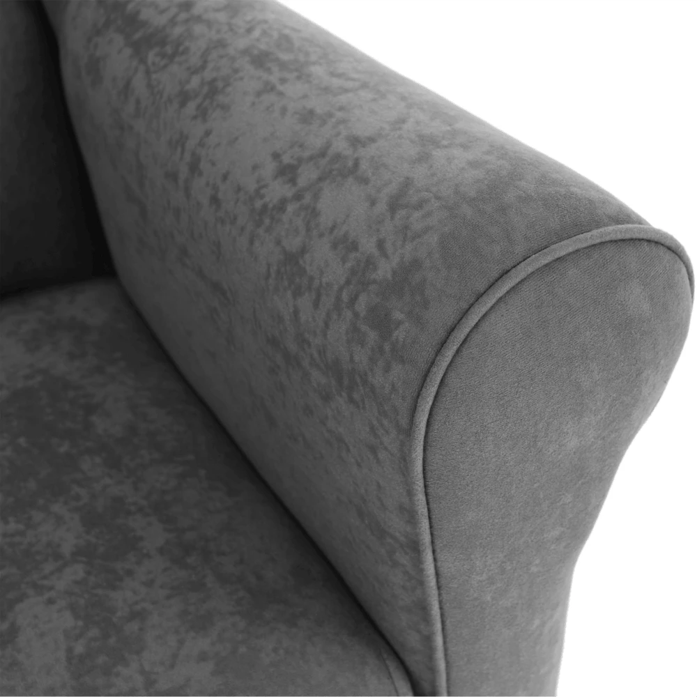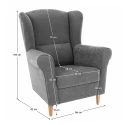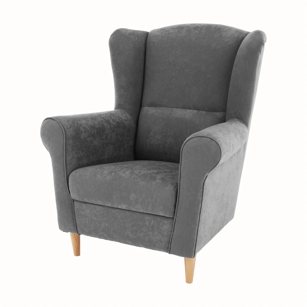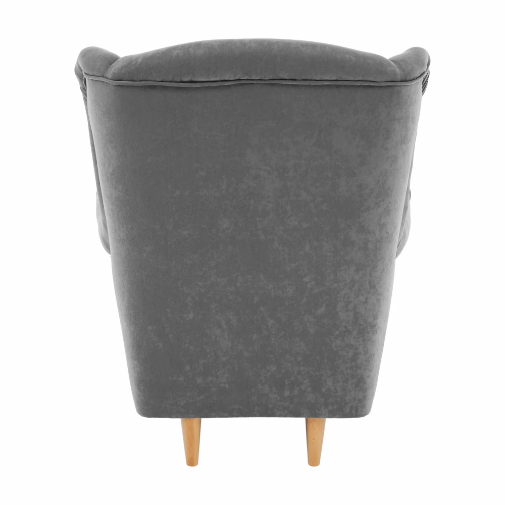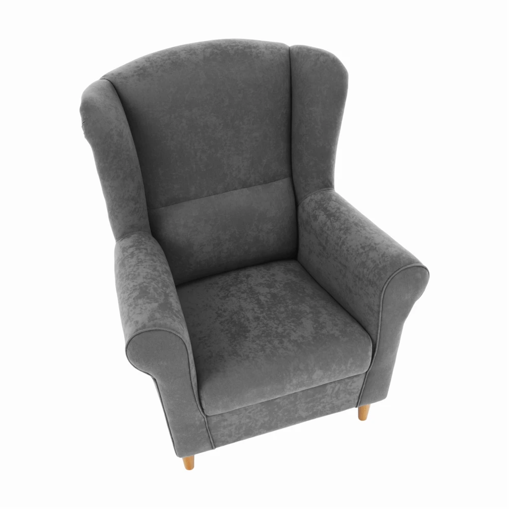 Křeslo-ušák Charlot v šedém barevném provedení látky.