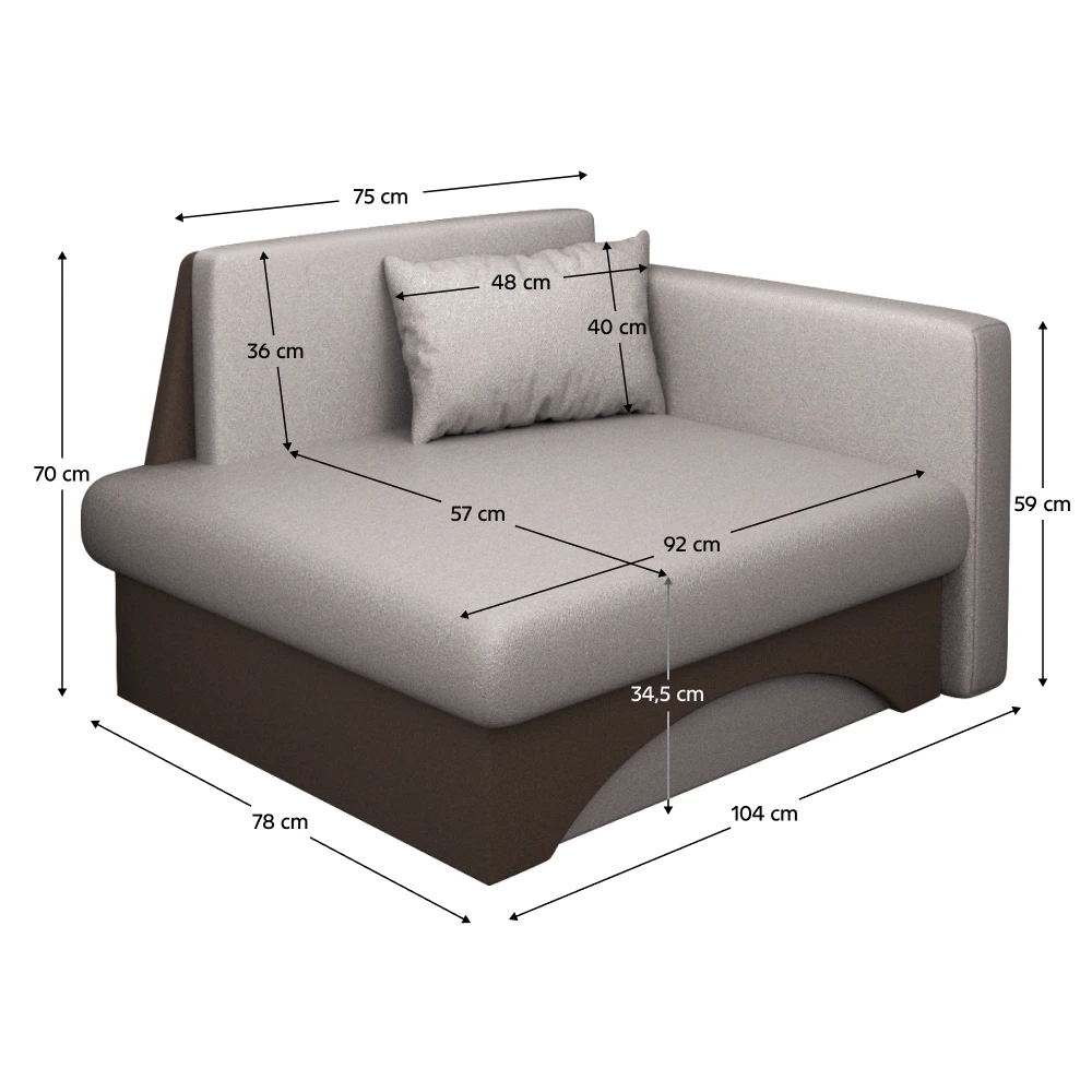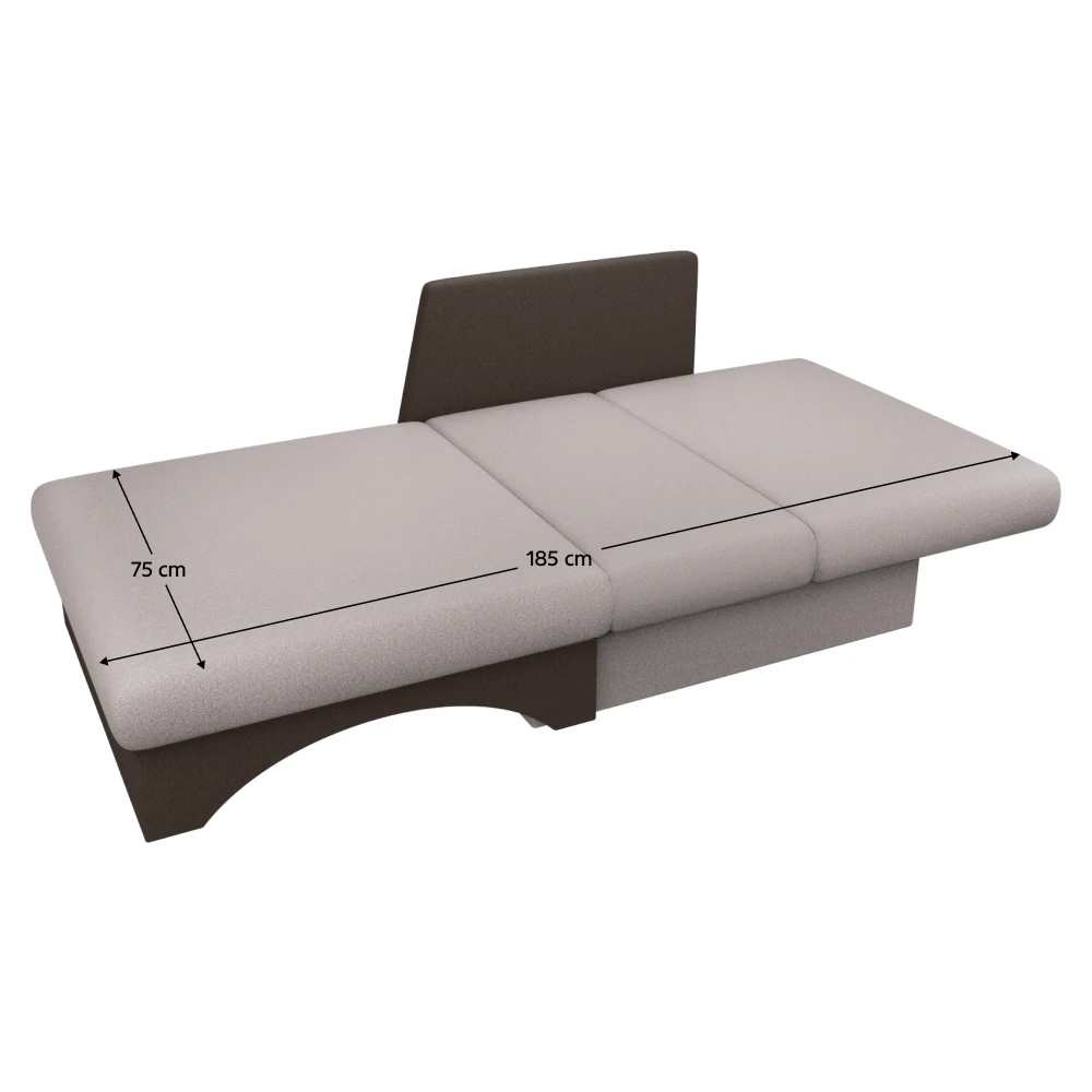 Součástí křesla je integrovaný úložný prostor, který využijete například pro uložení deky nebo polštáře. Po rozložení vznikne spací plocha o rozměru 75 × 185 cm, vhodná pro příležitostné přespání.
