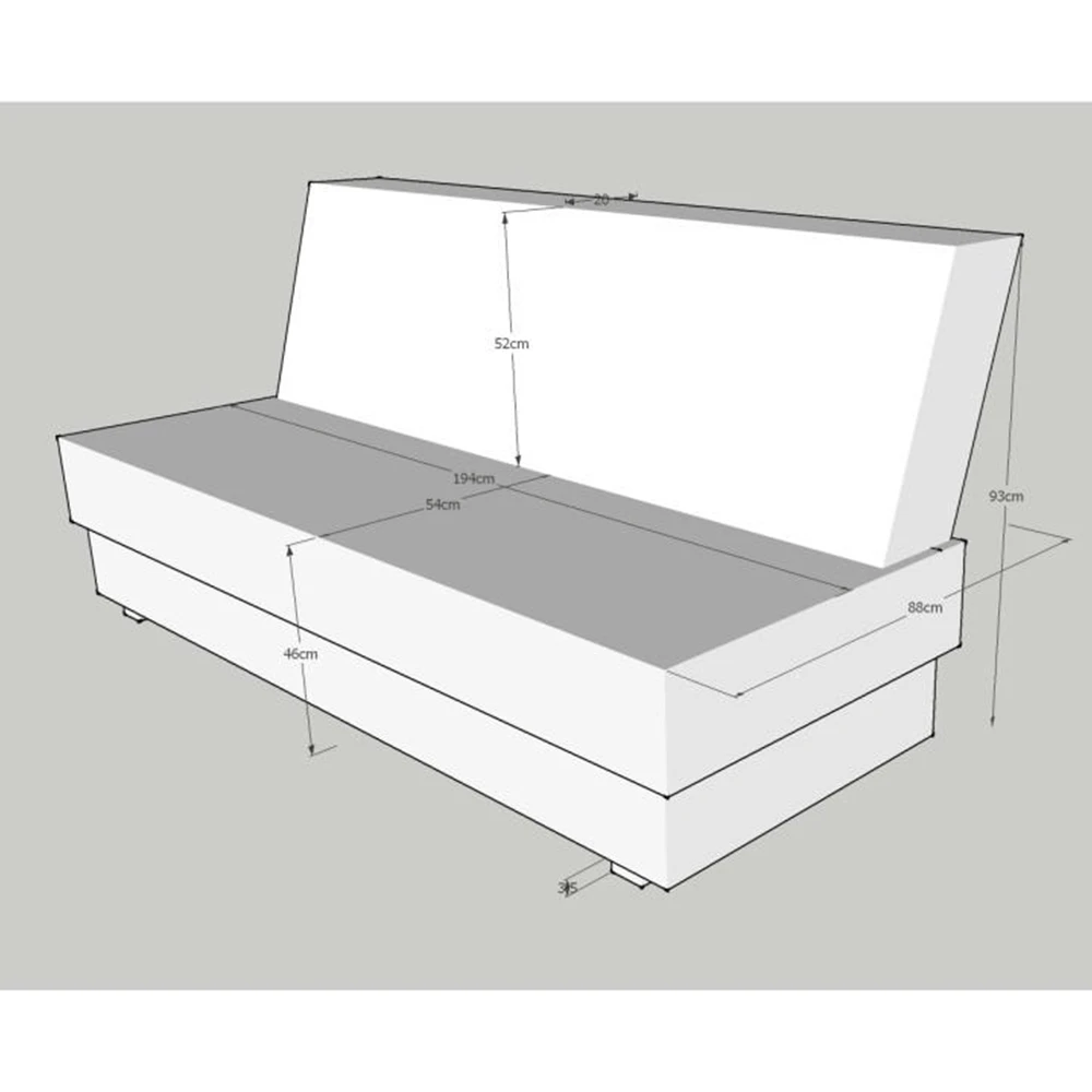 Rozměry (ŠxHxV): 195x90x90 cm, Plocha na spaní: 116x195 cm
