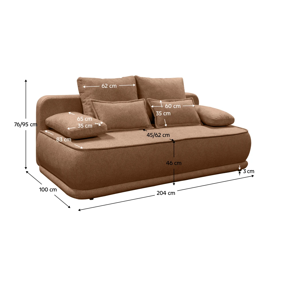 Rozměry (ŠxHxV): 204x100x76/95 cm