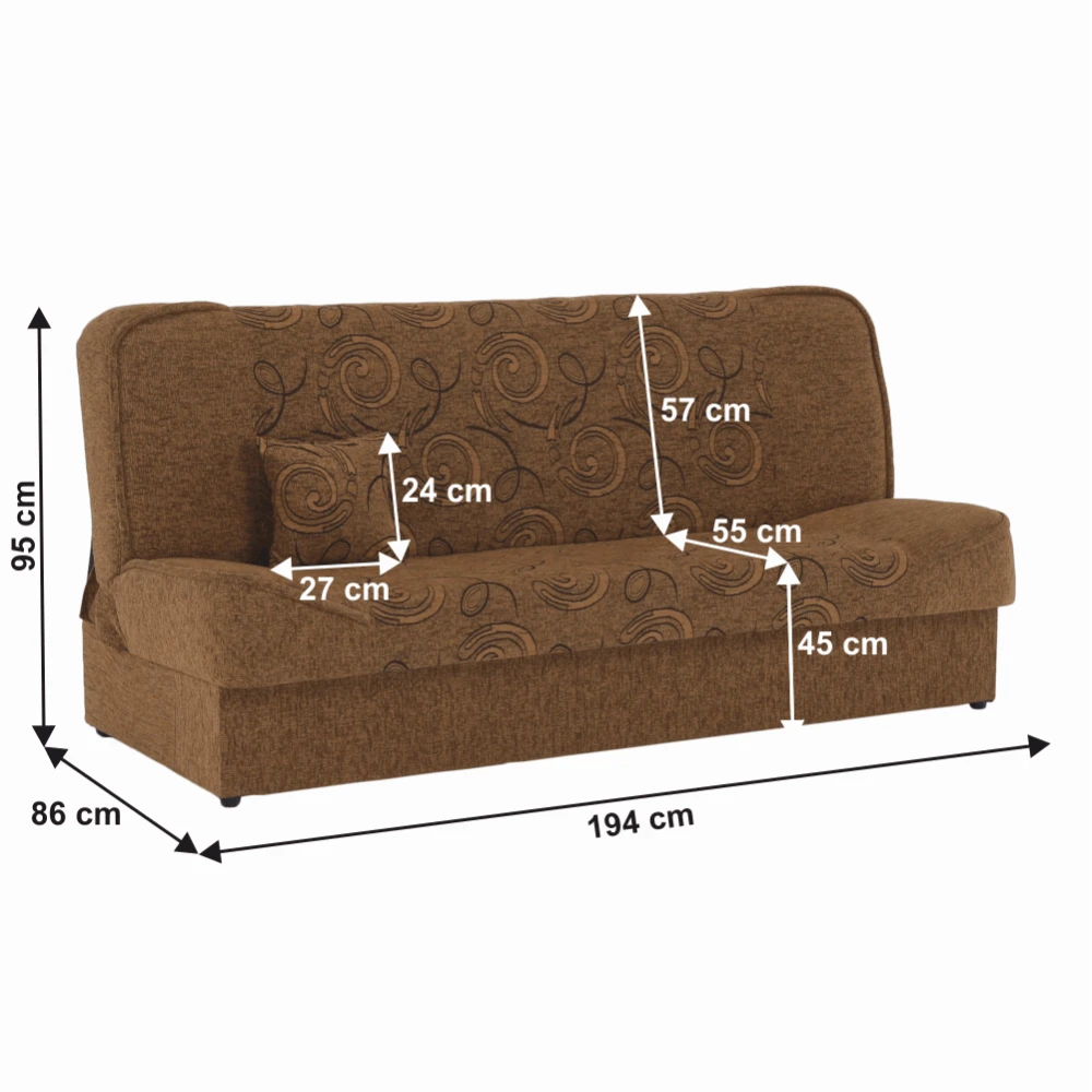 Rozměry ŠxHxV: 194x86x95 cm, plocha na spaní: ŠxD: 120x194 cm