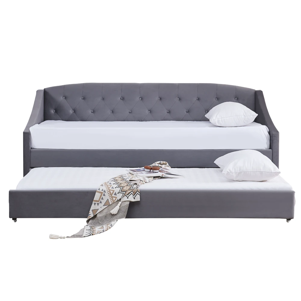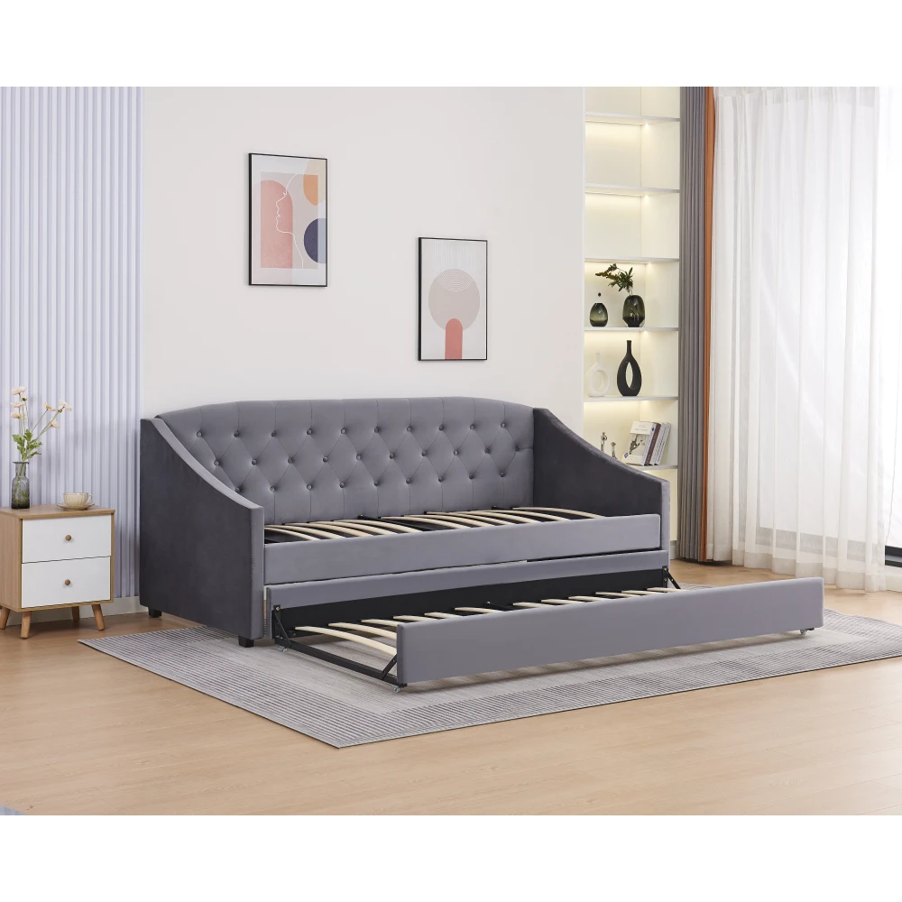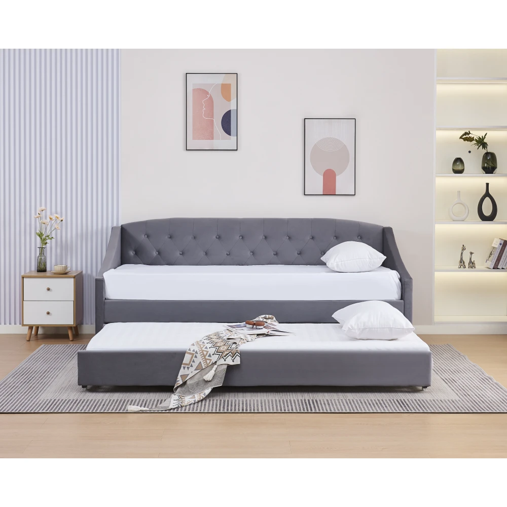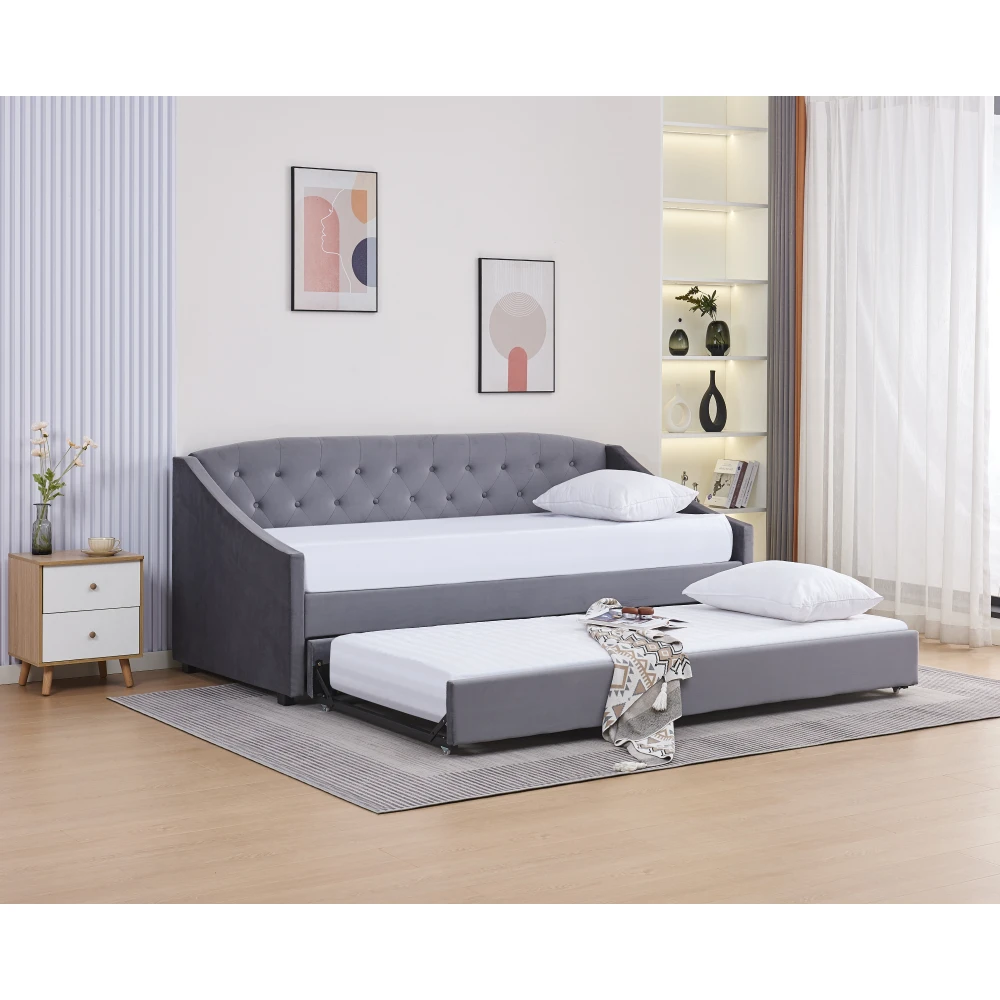 Postel ALODA 90×200 – elegantní šedá čalouněná postel s výsuvnou přistýlkou