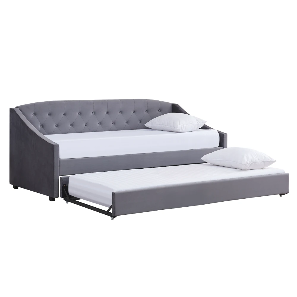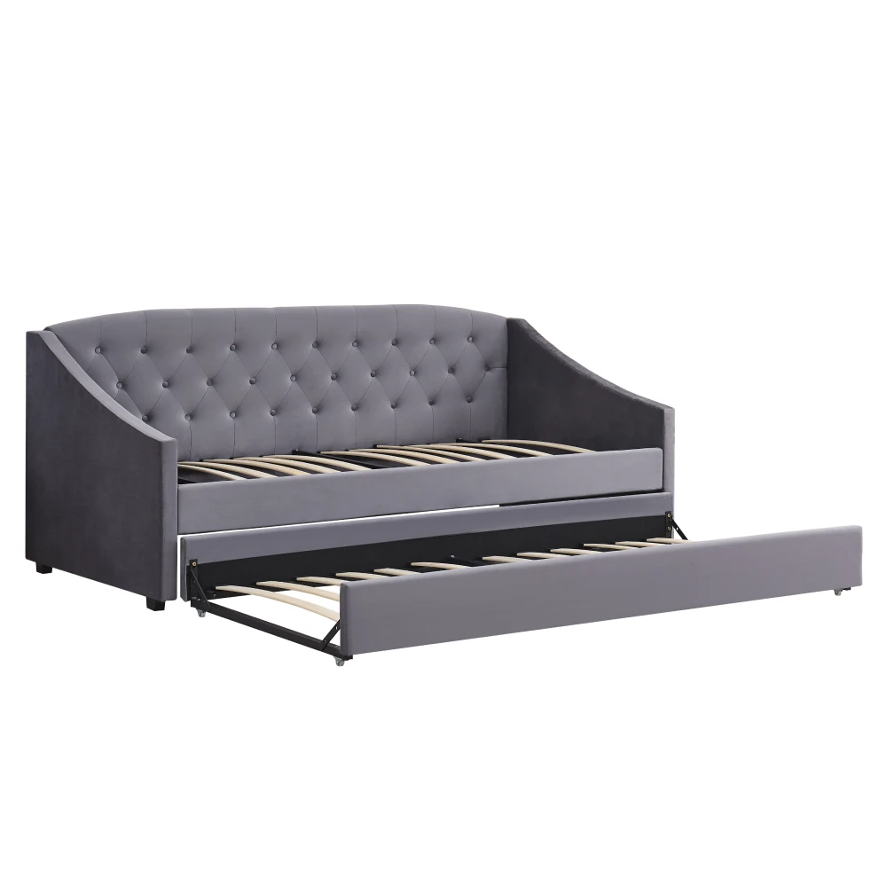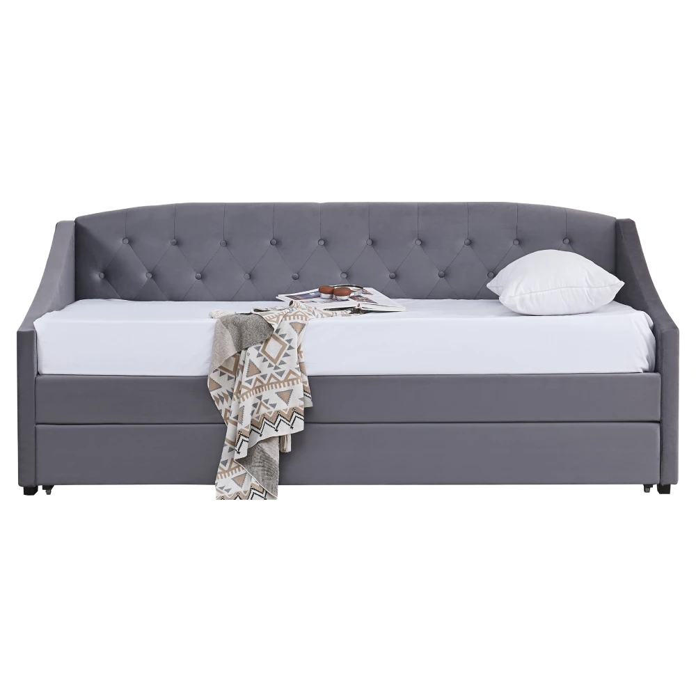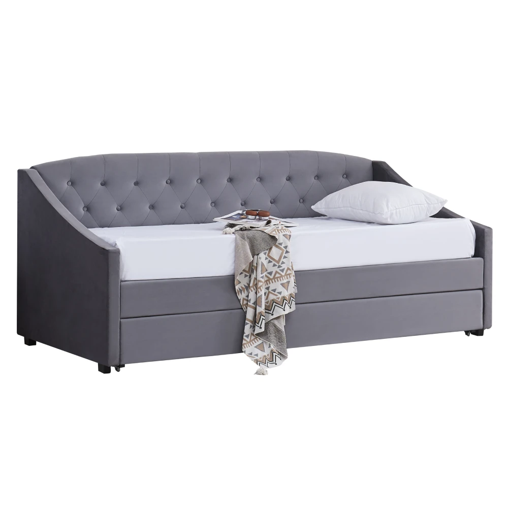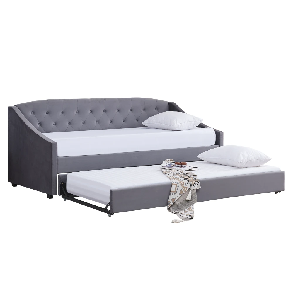 Postel ALODA 90×200 – elegantní šedá čalouněná postel s výsuvnou přistýlkou