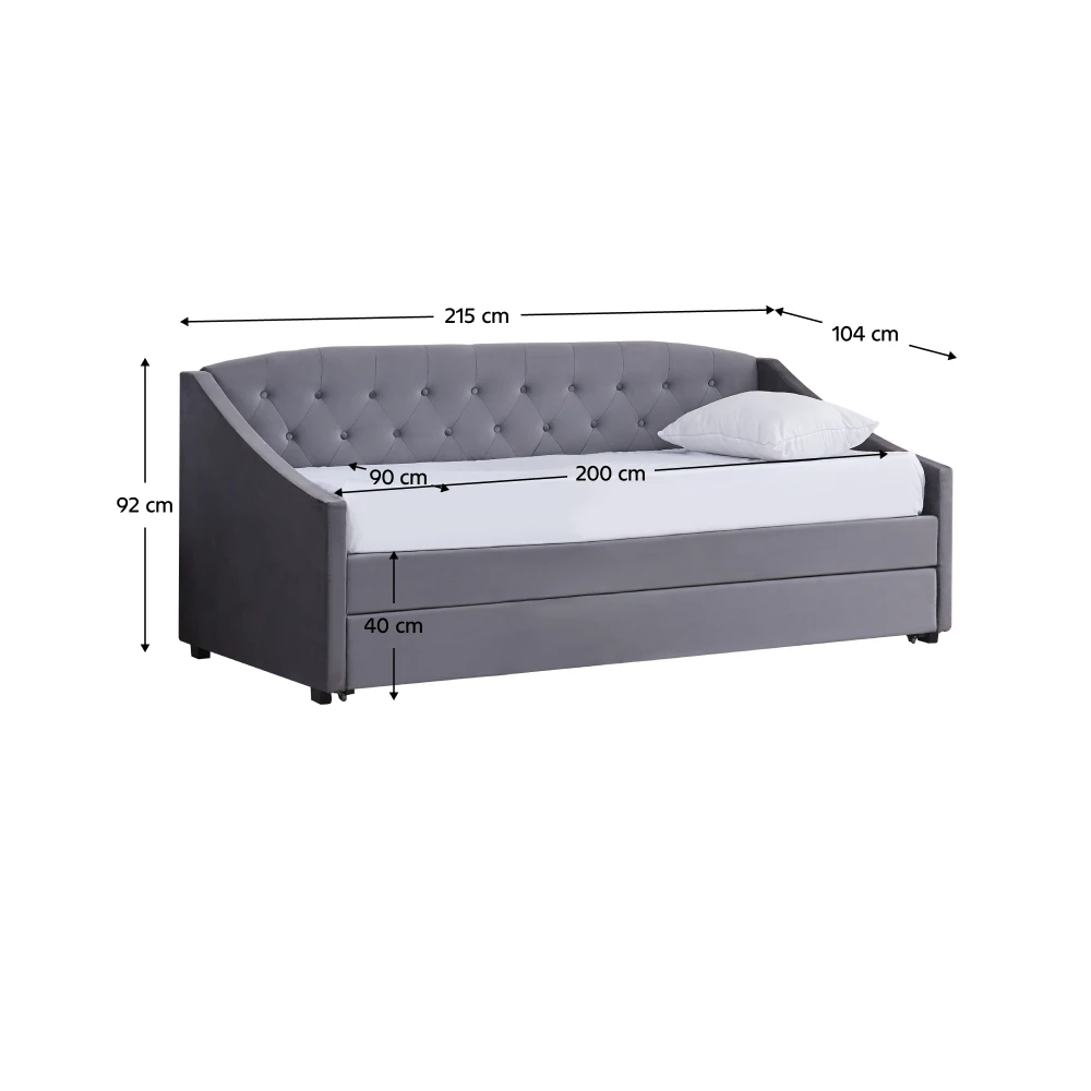 Konstrukce z kovu, pěny a překližky poskytuje výbornou stabilitu a pevnost. Ložná plocha 90 × 200 cm je ideální pro každodenní spánek, přičemž postel je vybavena praktickou výsuvnou přistýlkou na kolečkách, která nabízí plnohodnotné místo pro druhou osobu. Skvělé řešení do dětských, studentských i hostinských pokojů, kde je potřeba šetřit prostorem.