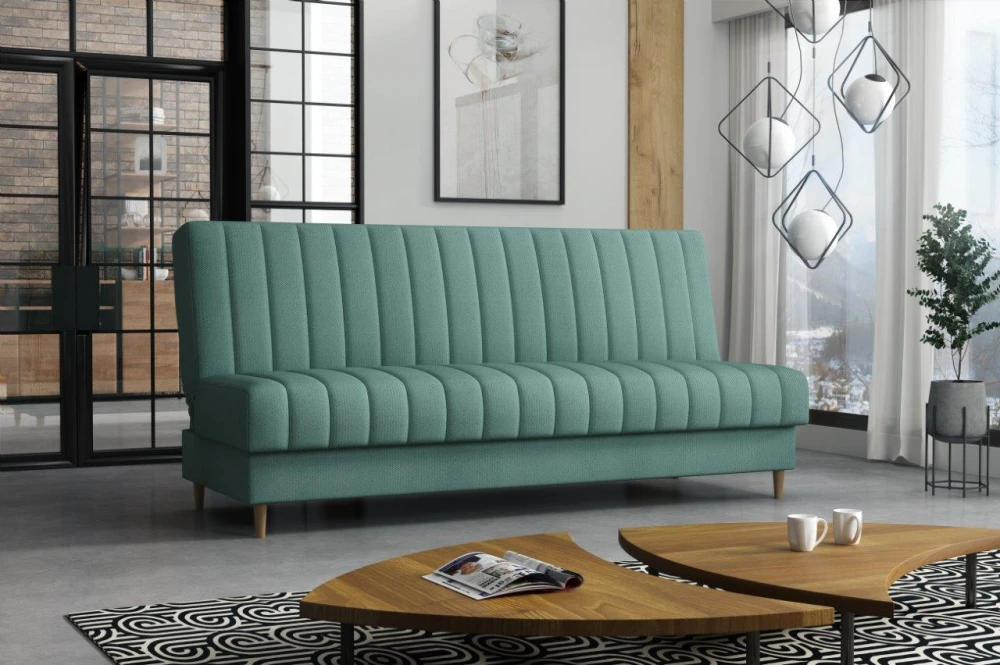 Pohovka Ejmy v sobě spojuje eleganci, funkčnost a příznivou cenu. Je vyrobená v jednoduchém nadčasovém designu, který se hodí do každého inferiéru. Umístit ji můžete nejen do obývacího pokoje, ale také např. do pracovny, nebo hostinského pokoje. Pohovka je rozkládací. Jednoduchým rozložením získáte lůžko k občasnému přespání Vaší návštěvy. Samozřejmostí je i praktický úložný prostor, který můžete využít třeba na lůžkoviny. Pohovku nabízíme v několika barevných provedeních. Vyobrazené doplňky a dekorace nejsou v ceně.