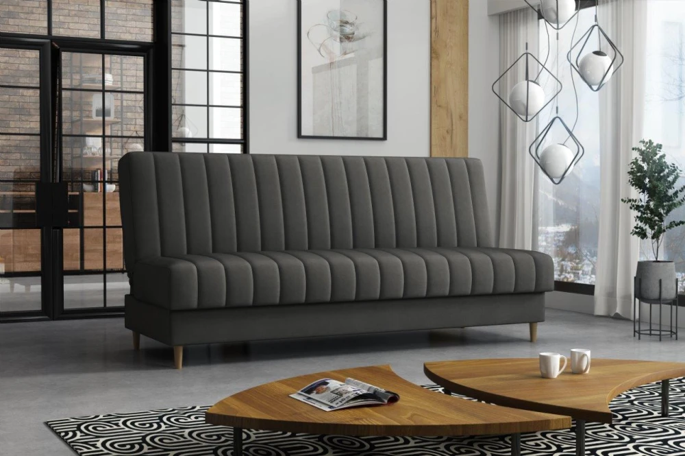Pohovka Ejmy v sobě spojuje eleganci, funkčnost a příznivou cenu. Je vyrobená v jednoduchém nadčasovém designu, který se hodí do každého inferiéru. Umístit ji můžete nejen do obývacího pokoje, ale také např. do pracovny, nebo hostinského pokoje. Pohovka je rozkládací. Jednoduchým rozložením získáte lůžko k občasnému přespání Vaší návštěvy. Samozřejmostí je i praktický úložný prostor, který můžete využít třeba na lůžkoviny. Pohovku nabízíme v několika barevných provedeních. Vyobrazené doplňky a dekorace nejsou v ceně.
