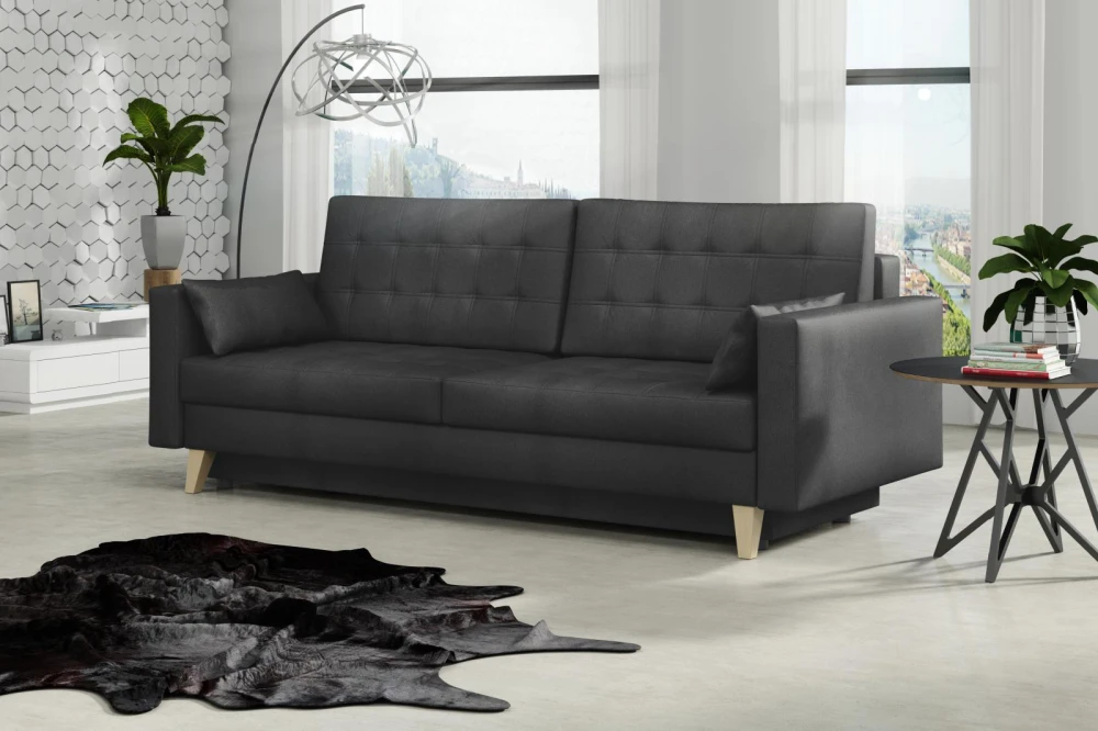 Pohovka Kelly je krásná a elegantní pohovka, která výborně zapadne do každého interiéru. Pohovka je velmi pohodlná a praktická. Praktickou stránkou pohovky je možnost rozložení - jednoduchým rozložením pomocí automatu vznikne dostatečně prostorné lůžko občasnému přespání Vaší návštěvy a samozřejmostí je také nepostradatelný úložný prostor. Pohodlí při sezení zajišťuje výpň sedáku z vlnitých pružin v kombinaci s pružinami bonell a kvalitní PUR pěnou. Pohovka je celočalouněná, takže ji můžete umístit i do prostoru. Výborně se hodí do obývacího pokoje, do pracovny či pokoje pro hosty. Pohovku nabízíme v několika trendy barvách. Vyobrazené dopňky a dekorace nejsou v ceně.