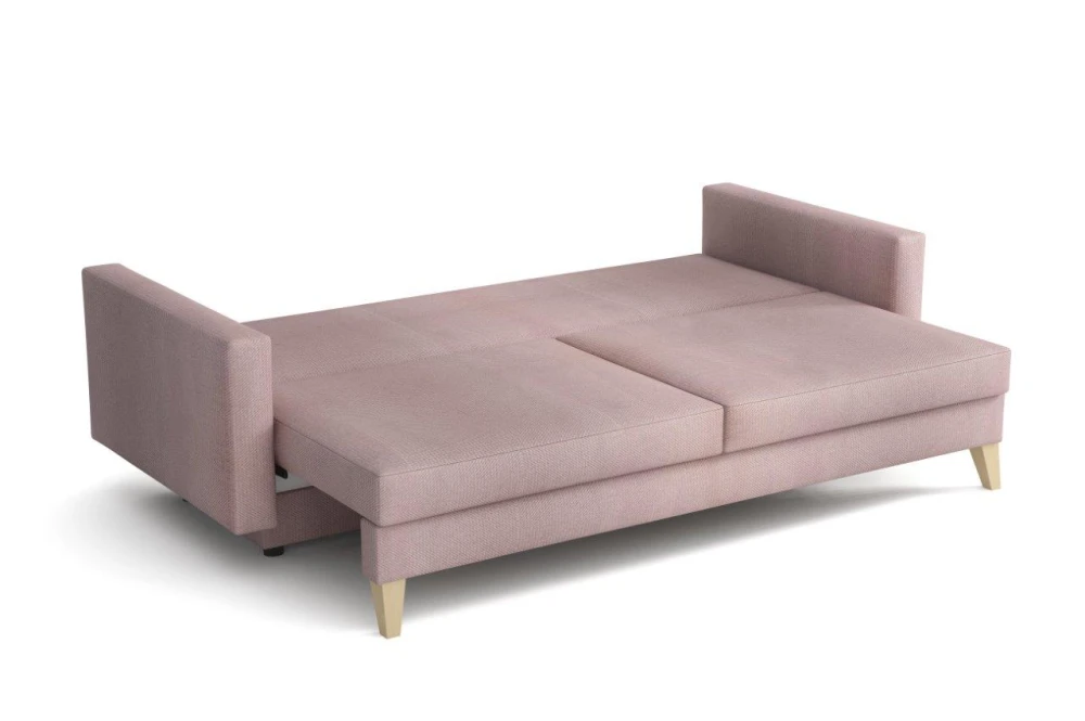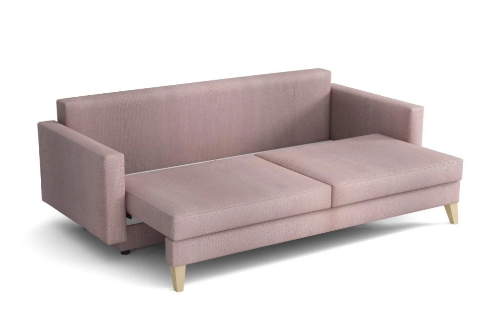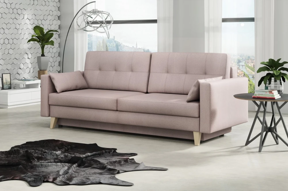 Pohovka Marina je krásným elegantním kouskem s nádechem RETRO designu a výborně zapadne do každého interiéru. Retro design podtrhují zešikmené dřevěné nohy a látkové knoflíky na opěrce. Pohovka je rozkládací a samozřejmostí je i nepostradatelný úložný prostor. Jednoduchým rozložením pomocí automatu vznikne dostatečně prostorné lůžko občasnému přespání Vaší návštěvy. Výpň sedáku tvoří vlnité pružiny v kombinaci s pružinami bonell a kvalitní PUR pěnou. Pohovka je celočalouněná, takže ji můžete umístit i do prostoru. Výborně se hodí do obývacího pokoje, do pracovny či pokoje pro hosty. Pohovku nabízíme v několika trendy barvách. Vyobrazené dopňky a dekorace nejsou v ceně.