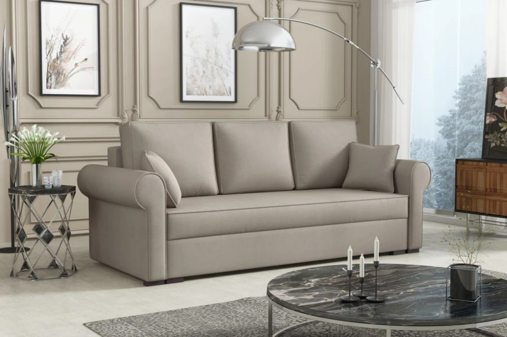 Příjemným relaxem po dlouhém a vyčerpávajícím dni v zaměstnání, je většinou pohodlná pohovka se šálkem dobré kávy, čaje, nebo sklenkou vína. K tomuto účelu je pohovka Megan jako stvořená. Jakmile se v ní jednou uvelebíte, jen tak něco vás z ní nevyžene. Tento elegantní kousek využijete nejem v obývacím pokoji. Poslouží všude tam, kde je pohodlí prioritou. Můžete ji tedy umístit i do kanceláře, pracovny, nebo pokoje pro hosty. Pohovka Megan je nejen velmi pohodlá, ale také praktická. Pohodlí při sezení zajišťují pružiny bonell v kombinaci s kvalitní PUR pěnou. Praktickou stránkou pohovky je možnost rozložení k příležitostnému přespání návštěvy a nezbytný úložný prostor, který využijete např.na lůžkoviny. Pohovka je potažena velmi kvalitní voděodolnou látkou, která je velmi příjemná na dotek a lehce se čistí, což jistě ocení rodiny s malými dětmi nebo zvířaty. Pohovka je celočalouněná, takže ji můžete umístit i do prostoru a nabízíme ji v několika trendy odstínech. Vyobrazené dopňky a dekorace nejsou v ceně. Pohovka bude dodána v potahové látce, která je na úvodní fotografii. Ostatní fotografie jsou ilustrační.