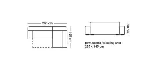 Rozměry sedačky jsou: 260 x 165 x 98 cm