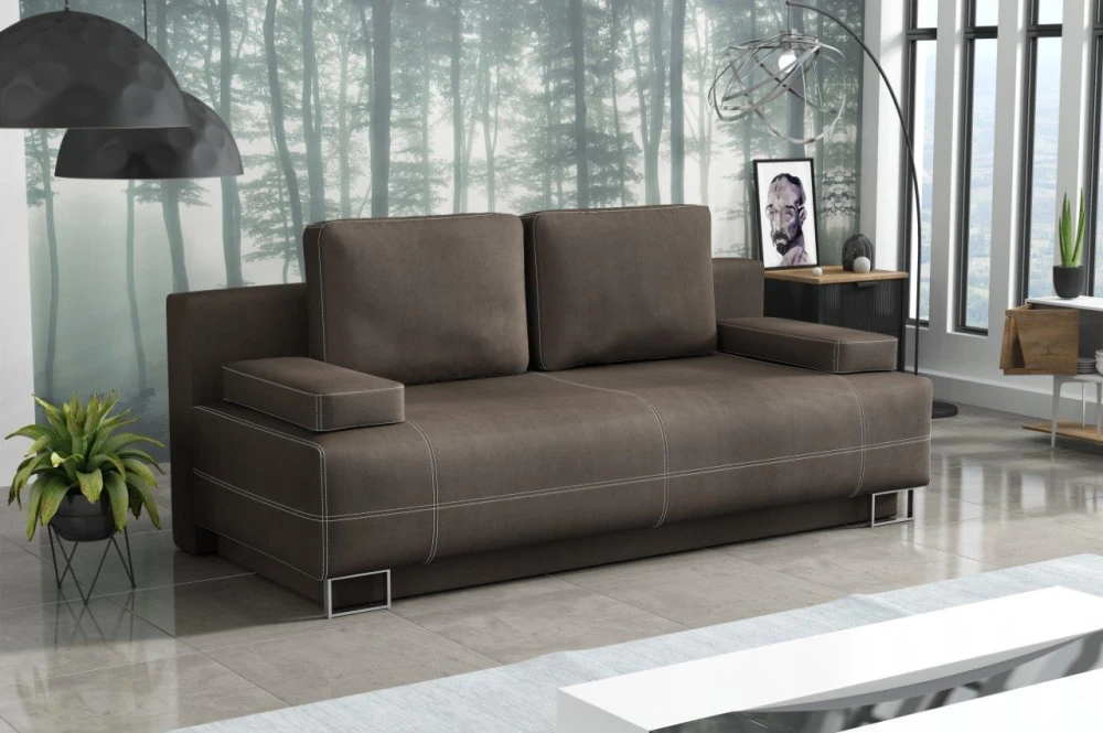 Pohovka Timmy je krásná a elegantní pohovka, která výborně zapadne do každého interiéru. Pohovka je velmi pohodlná a praktická. Praktickou stránkou pohovky je možnost rozložení - jednoduchým rozložením pomocí automatu vznikne dostatečně prostorné lůžko občasnému přespání Vaší návštěvy a samozřejmostí je také nepostradatelný úložný prostor. Pohodlí při sezení zajišťuje výpň sedáku, kterou tvoří pružiny bonell a kvalitní PUR pěna. Pohovka je potažena kvalitní voděodolnou látkou. Látka je velmi příjemná na dotek a lehce se čistí, což jistě ocení rodiny s malými dětmi nebo zvířaty. Pohovku nabízíme v několika trendy odstínech. Vyobrazené dopňky a dekorace nejsou v ceně.