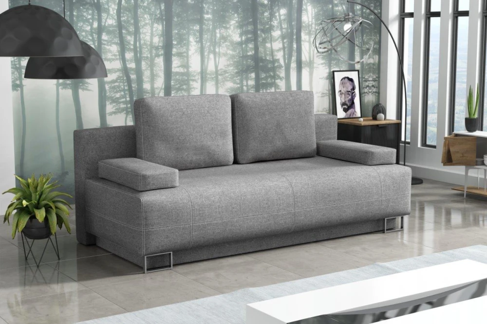 Pohovka Timmy je krásná a elegantní pohovka, která výborně zapadne do každého interiéru. Pohovka je velmi pohodlná a praktická. Praktickou stránkou pohovky je možnost rozložení - jednoduchým rozložením pomocí automatu vznikne dostatečně prostorné lůžko občasnému přespání Vaší návštěvy a samozřejmostí je také nepostradatelný úložný prostor. Pohodlí při sezení zajišťuje výpň sedáku, kterou tvoří pružiny bonell a kvalitní PUR pěna. Pohovka je potažena kvalitní látkou a nabízíme ji v několika trendy odstínech. Vyobrazené dopňky a dekorace nejsou v ceně.