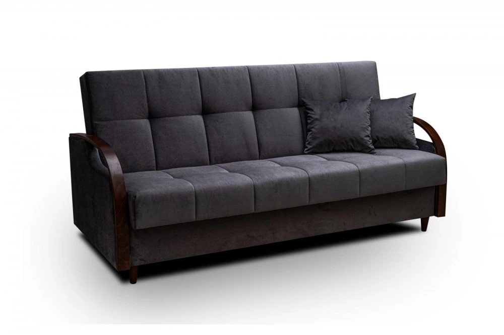 Pohovka Kornel má elegantní design, který skvěle doplní jakýkoliv interiér, kde je pohodlí prioritou. Efektním prvkem této pohovky jsou boční opěrky zakončené dřevěnou lištou. Pohovka je nejen velmi pohodlná, ale také praktická. Pohodlí při sezení zajišťují pružiny typu bonell v kombinaci s kvalitní PUR pěnou. Praktickou stránkou pohovky je možnost rozložení k příležitostnému přespání návštěvy a nezbytný úložný prostor, který využijete např.na lůžkoviny. Pohovku nabízíme v několika trendy odstínech. Pohovka bude dodána v potahové látce Kronos 22, vzorek látky je vyobrazen na druhé fotografii.