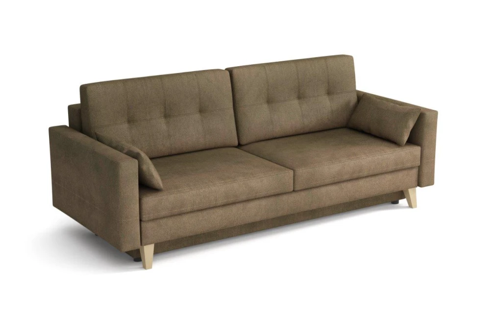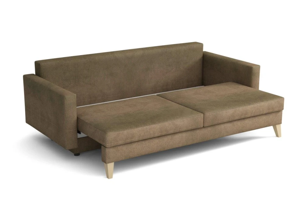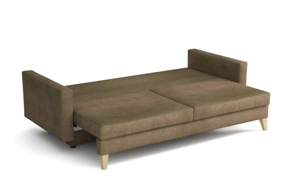 Pohovka Marina je krásným elegantním kouskem s nádechem RETRO designu a výborně zapadne do každého interiéru. Retro design podtrhují zešikmené dřevěné nohy a látkové knoflíky na opěrce. Pohovka je rozkládací a samozřejmostí je i nepostradatelný úložný prostor. Jednoduchým rozložením pomocí automatu vznikne dostatečně prostorné lůžko občasnému přespání Vaší návštěvy. Výpň sedáku tvoří vlnité pružiny v kombinaci s pružinami bonell a kvalitní PUR pěnou. Pohovka je celočalouněná, takže ji můžete umístit i do prostoru. Výborně se hodí do obývacího pokoje, do pracovny či pokoje pro hosty. Pohovku nabízíme v několika trendy barvách. Vyobrazené dopňky a dekorace nejsou v ceně.