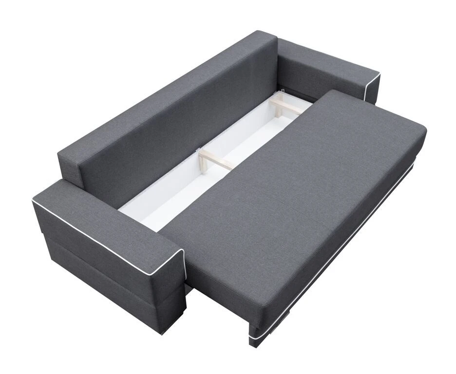 Pohovka Sabina je určena pro ty, kteří mají rádi komfort a originalitu. Kombinace pružin faliste a bonell s kvalitní PUR pěnou, zajišťují velmi pohodlné sezení. Pohovka je rozkládací a má také praktický úložný prostor. Jednoduchým rozkladem pomocí automatu vznikne lůžko vhodné k příležitostnému spaní. Pohovku nabízíme v kvalitní potahové látce s elegantním bílým lemováním, a to v několika barevných provedeních, které také naleznete v naší nabídce. V ceně pohovky jsou 3 velké opěrné polštáře. Ostatní vyobrazené dekorace nejsou v ceně.