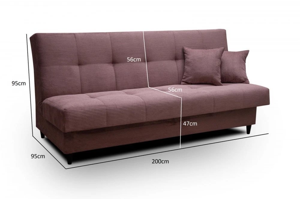 Pohovka Sander je vyrobená v jednoduchém stylu, který se hodí do každého interiéru a skvěle ho doplní. Velkou předností u této pohovky je zvýšená výška sedu 47 cm. Díky svým rozměrům nezabere moc místa a je vhodná i do malých pokojů. Výplň sedáku tvoří pružiny bonell s kvalitní PUR pěnou. Pohovka je rozkládací a samozřejmostí je i nepostradatelný úložný prostor. Jednoduchým rozložením pomocí systému klik-klak vznikne lůžko k občasnému přespání. Pohovka je potažena kvalitní potahovou látkou Poso, která se vyznačuje sametově jemným povrchem a svým typickým vzhledem připomíná manšestr. Vybrat si můžete z několika trendy odstínů. Správná barva potahové látky je na úvodní fotografii. Fotografie rozkladu jsou ilustrační.