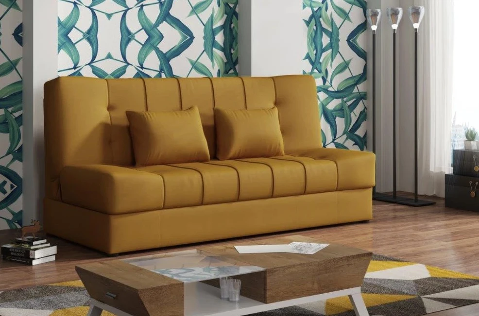 Pohovka Sun je příjemným spojením elegance, funkčnosti a atraktivní ceny. Skvěle doplní design Vašeho obývacího pokoje, ale je také vhodná např. do studentského pokoje, pracovny, nebo hostinského pokoje. Pohovka je rozkládací. Jednoduchým rozložením pomocí systému klik klak, získáte lůžko k občasnému přespání Vaší návštěvy. Samozřejmostí je i praktický úložný prostor, který můžete využít třeba na lůžkoviny. Pohovku nabízíme v několika trendy barevných provedeních. V ceně pohovky jsou 2 dekorační polštářky. Ostatní vyobrazené doplňky a dekorace nejsou v ceně.