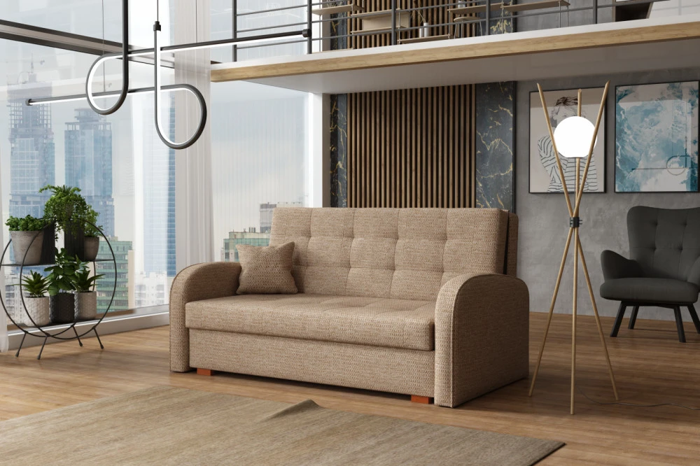 Rozkládací pohovka Vivian je díky svým rozměrům vhodná i do menších pokojů. Je vhodná do obývacího, dětského, studentského, nebo hostinského pokoje. Jednoduchým rozložením pomocí automatu, získáte lůžko k příležitostnému přespání Vaší návštěvy. Výplň sedáku tvoří vlnité pružiny v kombinaci s PUR pěnou. Pohovka je potažena kvalitní látkou a nabízíme ji v několika trendy odstínech. Pohovka disponuje i nepostradatelným úložným prostorem, který využijete např. na deku a polštář. V ceně pohovky je 1 dekorační polštář. Ostatní vyobrazené dekorace nejsou v ceně.