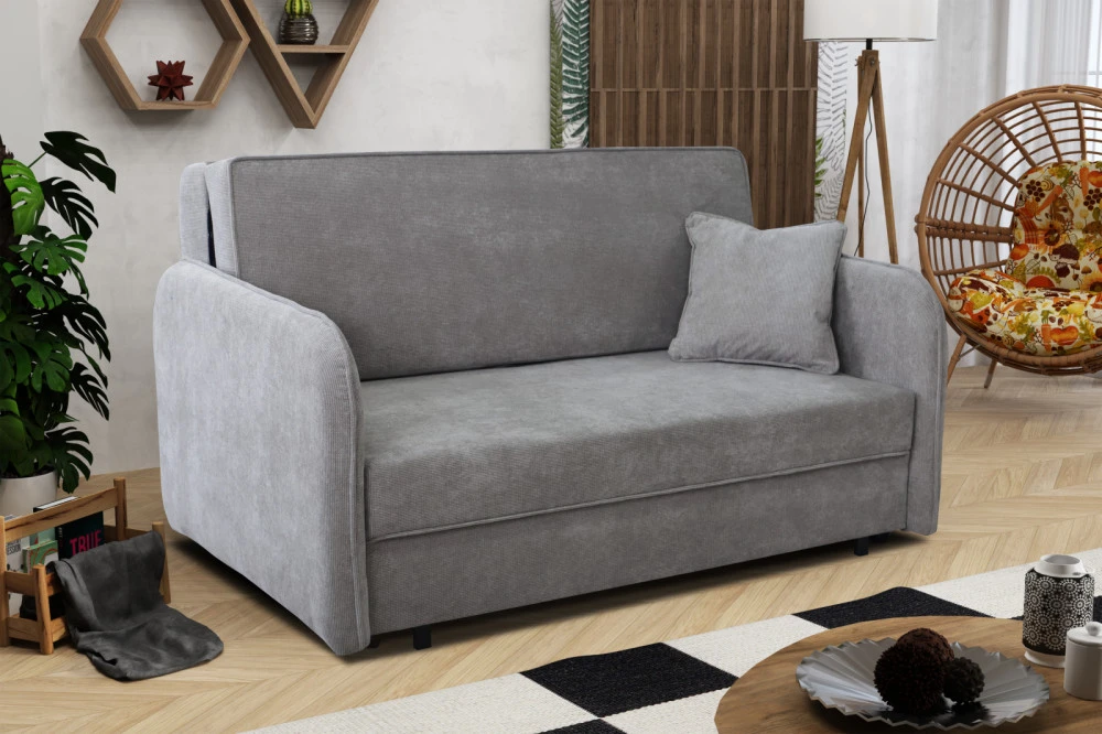 Rozkládací pohovka Vivian Loft III je díky svým rozměrům vhodná i do menších pokojů. Své uplatnění najde nejen v obývacím pokoji, ale také v dětském, studentském, nebo hostinském pokoji. Jednoduchým rozložením pomocí automatu, získáte lůžko k příležitostnému přespání Vaší návštěvy. Výplň sedáku tvoří vlnité pružiny v kombinaci s PUR pěnou. Pohovka je potažena kvalitní látkou a nabízíme ji v několika trendy odstínech. Pohovka disponuje i nepostradatelným úložným prostorem, který využijete např. na deku a polštář. V ceně pohovky je 1 dekorační polštář. Ostatní vyobrazené dekorace nejsou v ceně.