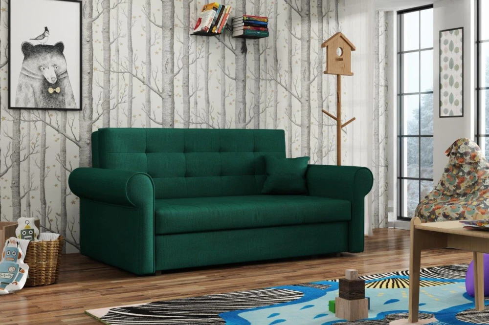 Rozkládací pohovka Vivian je díky svým rozměrům vhodná i do menších pokojů. Své uplatnění najde nejen v obývacím pokoji, ale také v dětském, studentském, nebo hostinském pokoji. Jednoduchým rozložením pomocí automatu, získáte lůžko k příležitostnému přespání Vaší návštěvy. Výplň sedáku tvoří vlnité pružiny v kombinaci s PUR pěnou. Pohovka je potažena kvalitní látkou a nabízíme ji v několika trendy odstínech. Pohovka disponuje i nepostradatelným úložným prostorem, který využijete např. na deku a polštář. V ceně pohovky je 1 dekorační polštář. Ostatní vyobrazené dekorace nejsou v ceně.